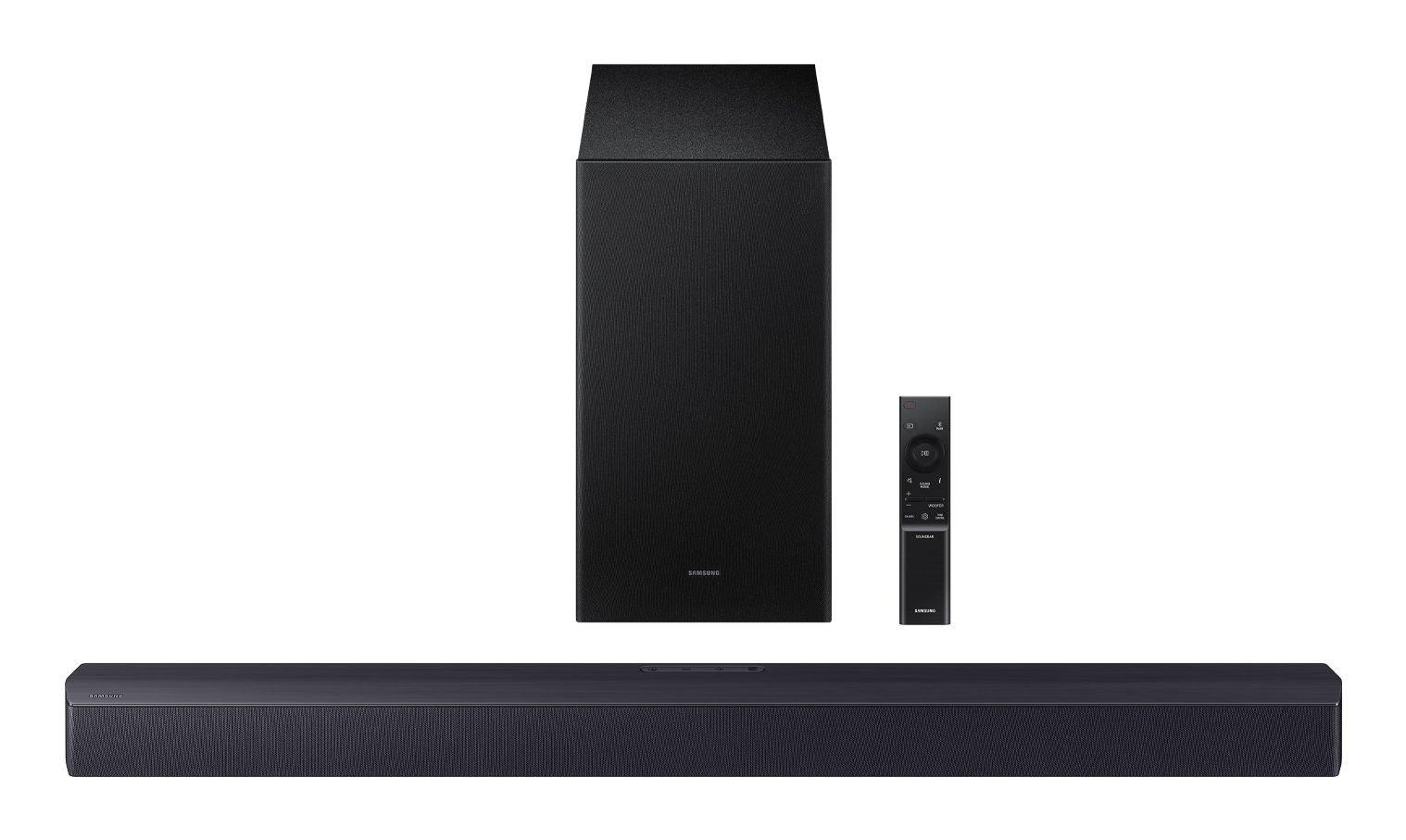 Samsung B-Series Soundbar HW-B450F/ZF, Audio 2.1 canali, Wireless Dolby 2ch, 2025, 2.1 canali, DTS Virtual:X, Dolby 2.0, Audio Dolby, Adaptive Lite, Amplificazione per basso, Game Pro, Standard, Espansione del suono surround, Wireless, Nero, Titan Black