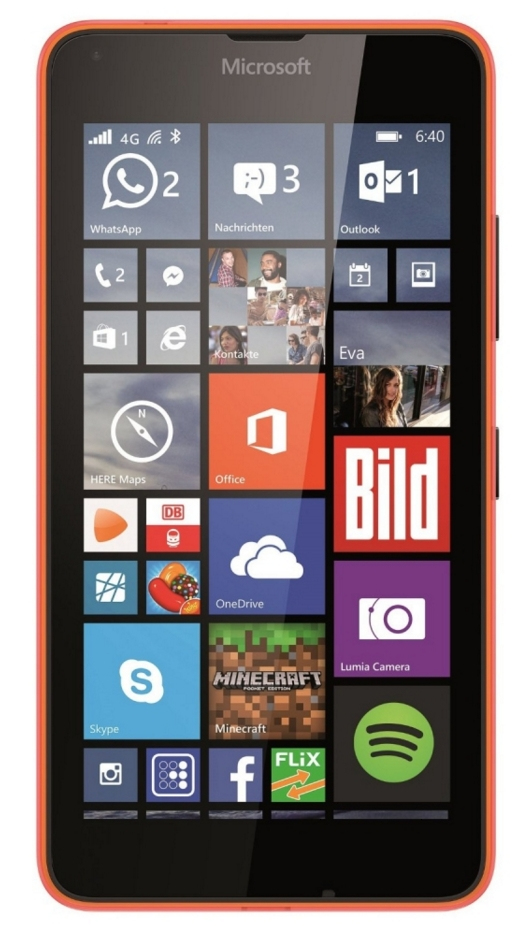TIM Microsoft Lumia 640. Dimensioni schermo: 12,7 cm (5"), Risoluzione del display: 1280 x 720 Pixel, Tipo di display: IPS. Famiglia processore: Qualcomm Snapdragon, Modello del processore: 400. Capacità della RAM: 1 GB, Capacità memoria interna: 8 GB. Risoluzione fotocamera posteriore (numerico): 8 MP, Tipo di fotocamera posteriore: Fotocamera singola. Capacità della scheda SIM: SIM singola. Sistema operativo incluso: Windows Mobile 8.1. Capacità della batteria: 2500 mAh. Colore del prodotto: Arancione. Peso: 145 g