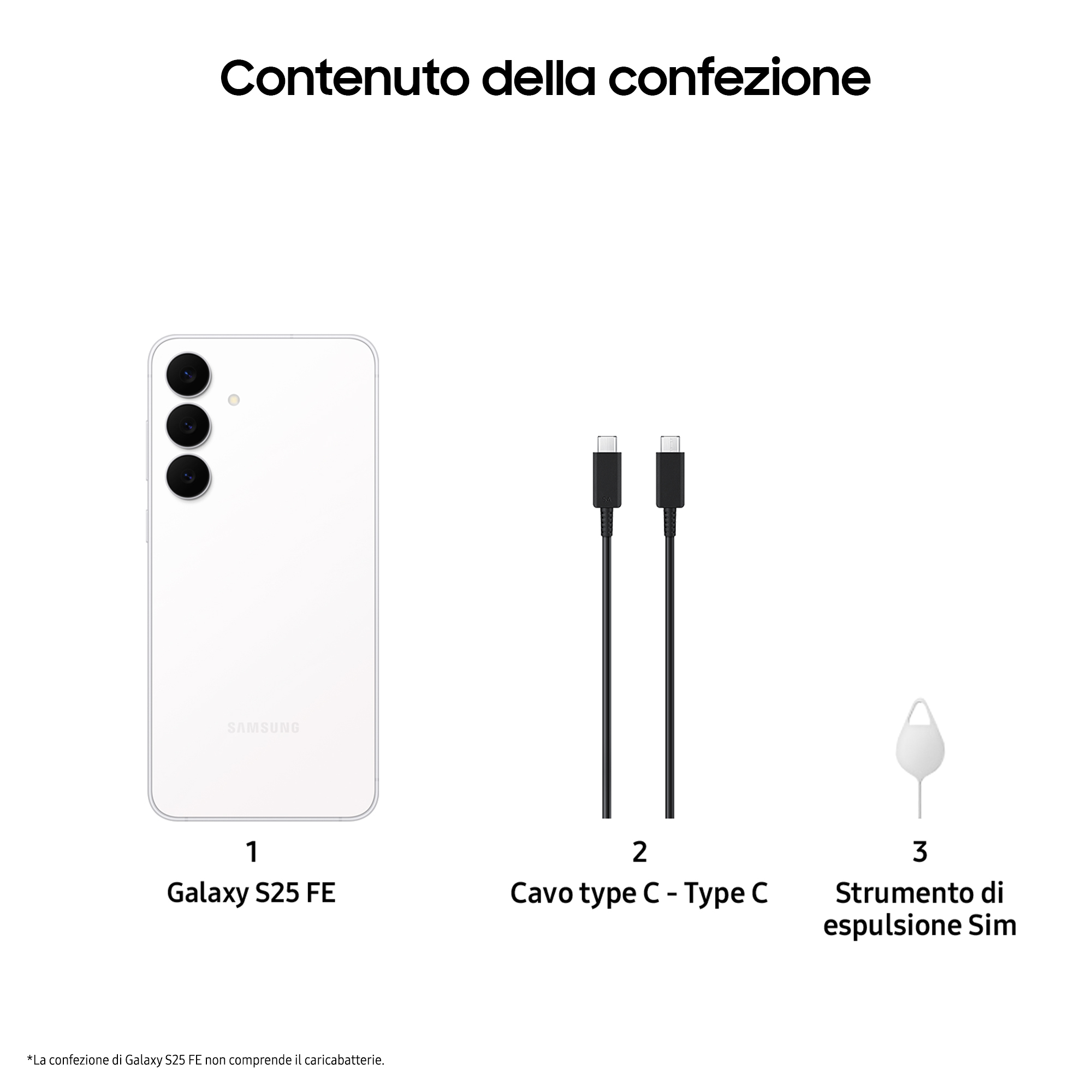 Samsung Galaxy S25 FE, Smartphone AI, Display Dynamic AMOLED 2X 6.7'', Fotocamera 50MP, 8GB RAM, 256GB, Batteria 4.900 mAh, White, 17 cm (6.7"), 1080 x 2340 Pixel, 8 GB, 256 GB, 50 MP, Bianco
