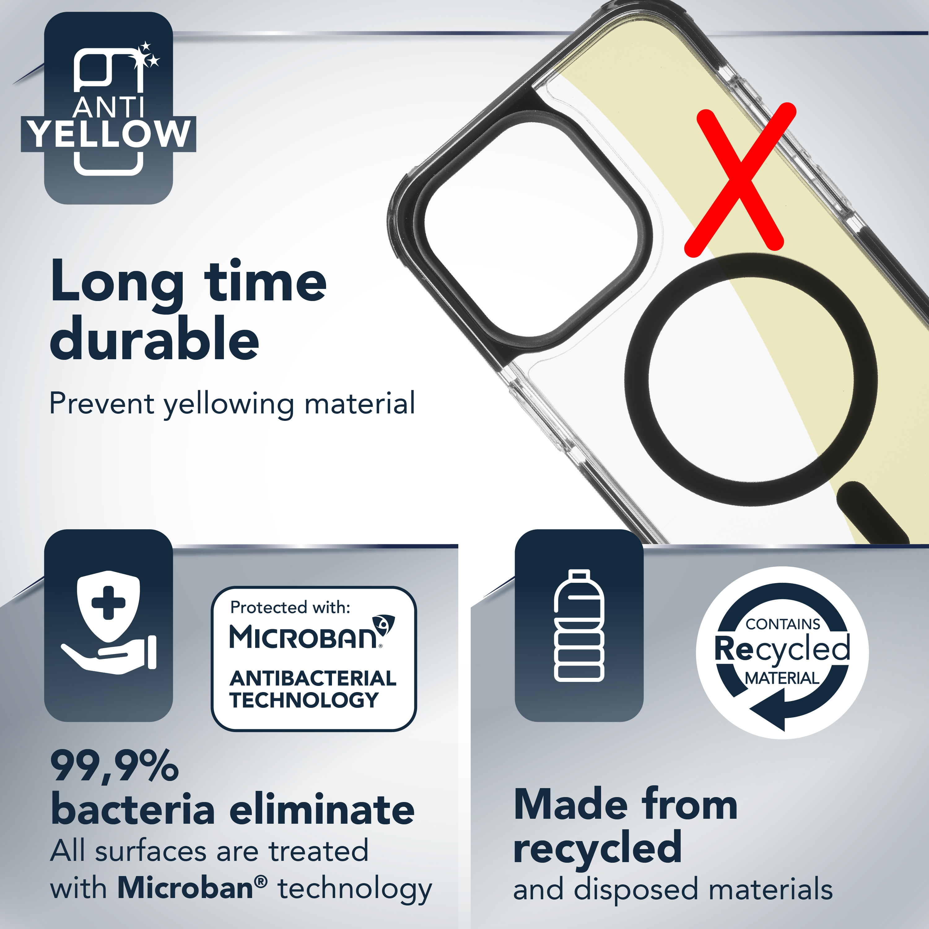 Funzioni di protezioneAntibatterico, Resistente agli urti, Resistente alle cadute, Scratch resistant, Resistente agli urti