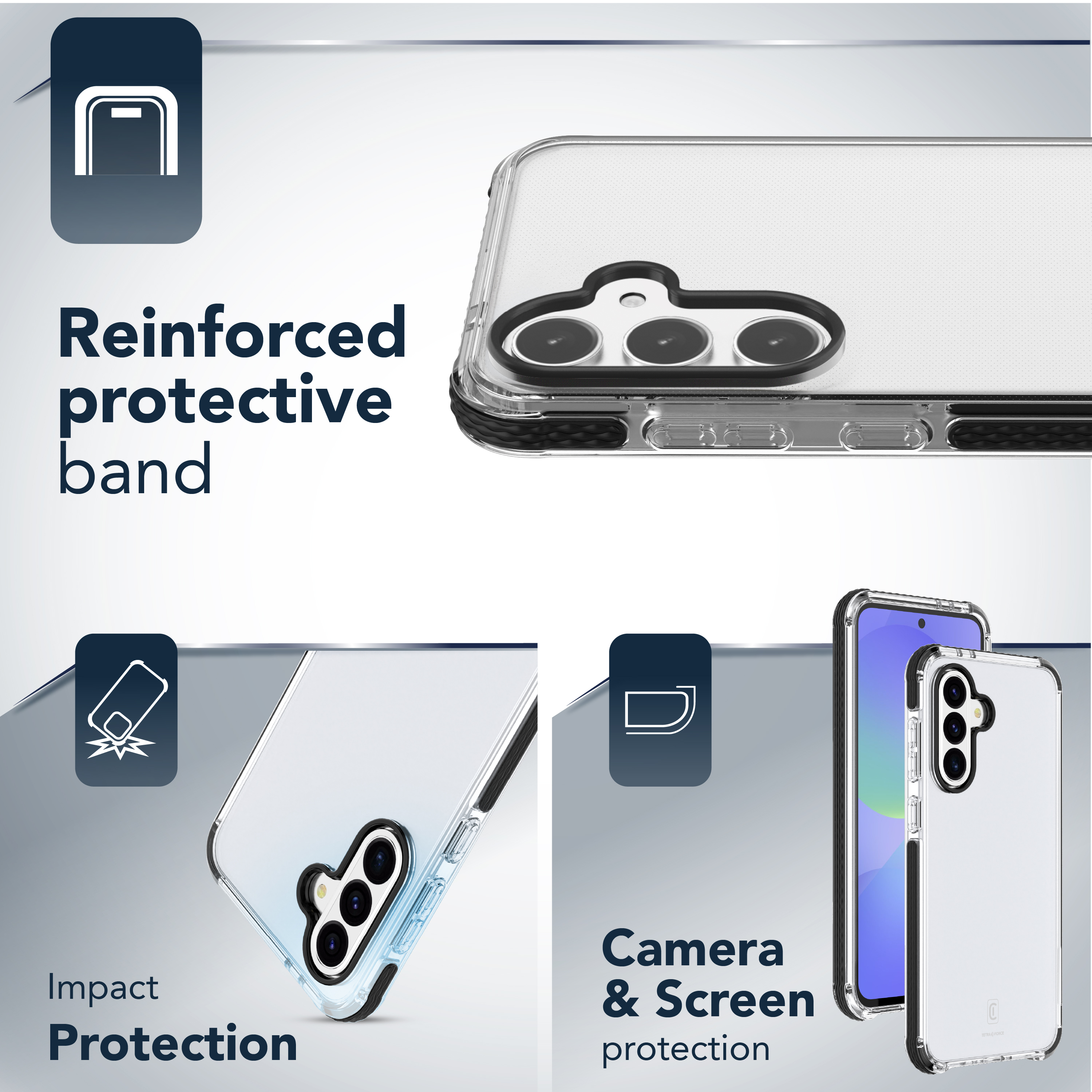 Cellularline Tetra Force Strong Guard - Galaxy A36/A56 Custodia flessibile ultra-protettiva, anti-shock con tecnologia antibatterica Microban® integrata. Tipologia custodia: Cover, Compatibilità marca: Samsung, Compatibilità: Galaxy A36/A56, Capienza massima dimensioni dello schermo: 16,8 cm (6.6"), Colorazione superficie: Monocromatico, Colore del prodotto: Trasparente