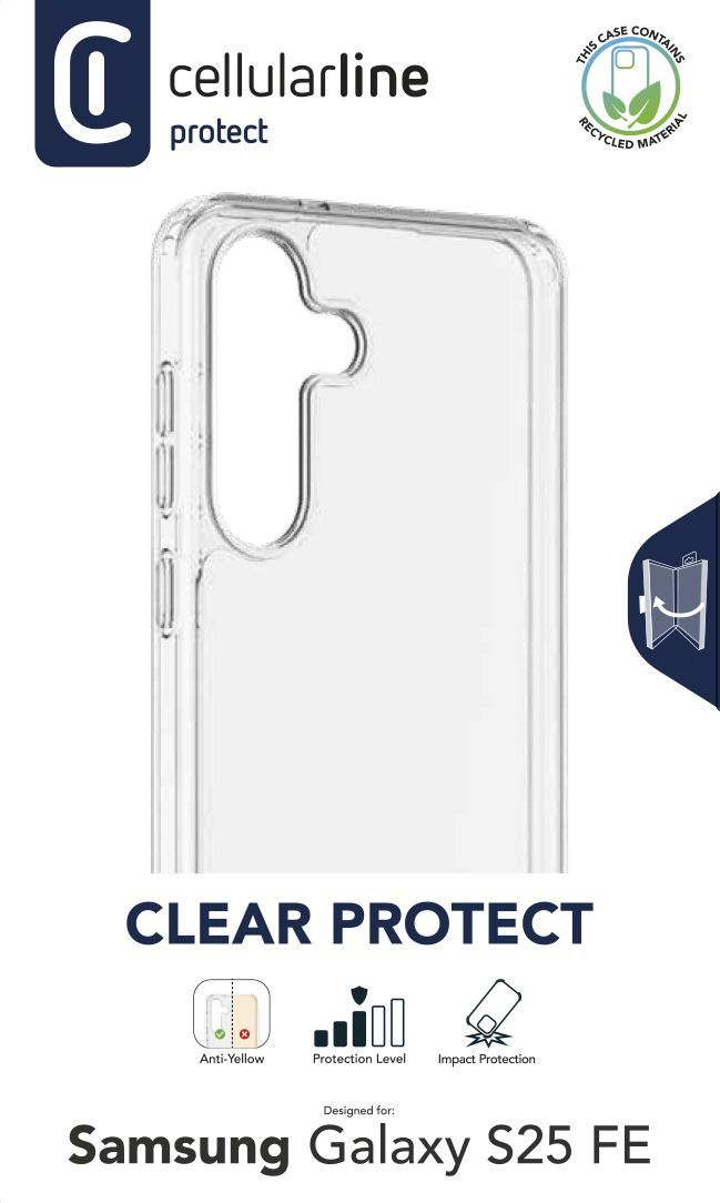 Cellularline Clear Strong - Galaxy S25 FE Custodia rigida con bordi in gomma. Tipologia custodia: Cover, Compatibilità marca: Samsung, Compatibilità: Galaxy S25 FE, Capienza massima dimensioni dello schermo: 17 cm (6.7"), Colorazione superficie: Monocromatico, Colore del prodotto: Trasparente
