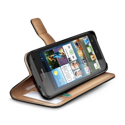 Celly WALLY397. Tipologia custodia: Custodia a borsellino, Compatibilità marca: Huawei, Compatibilità: Ascend Y530, Colore del prodotto: Nero, Supporto per scrivania