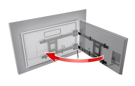 Grazie alla struttura a bandiera permette di ruotare qualsiasi televisore da 55” a 82” di 90°. Se chiuso invece, grazie ai magneti in dotazione, rimane ben aderente con una distanza di 2 cm dalla parete.
