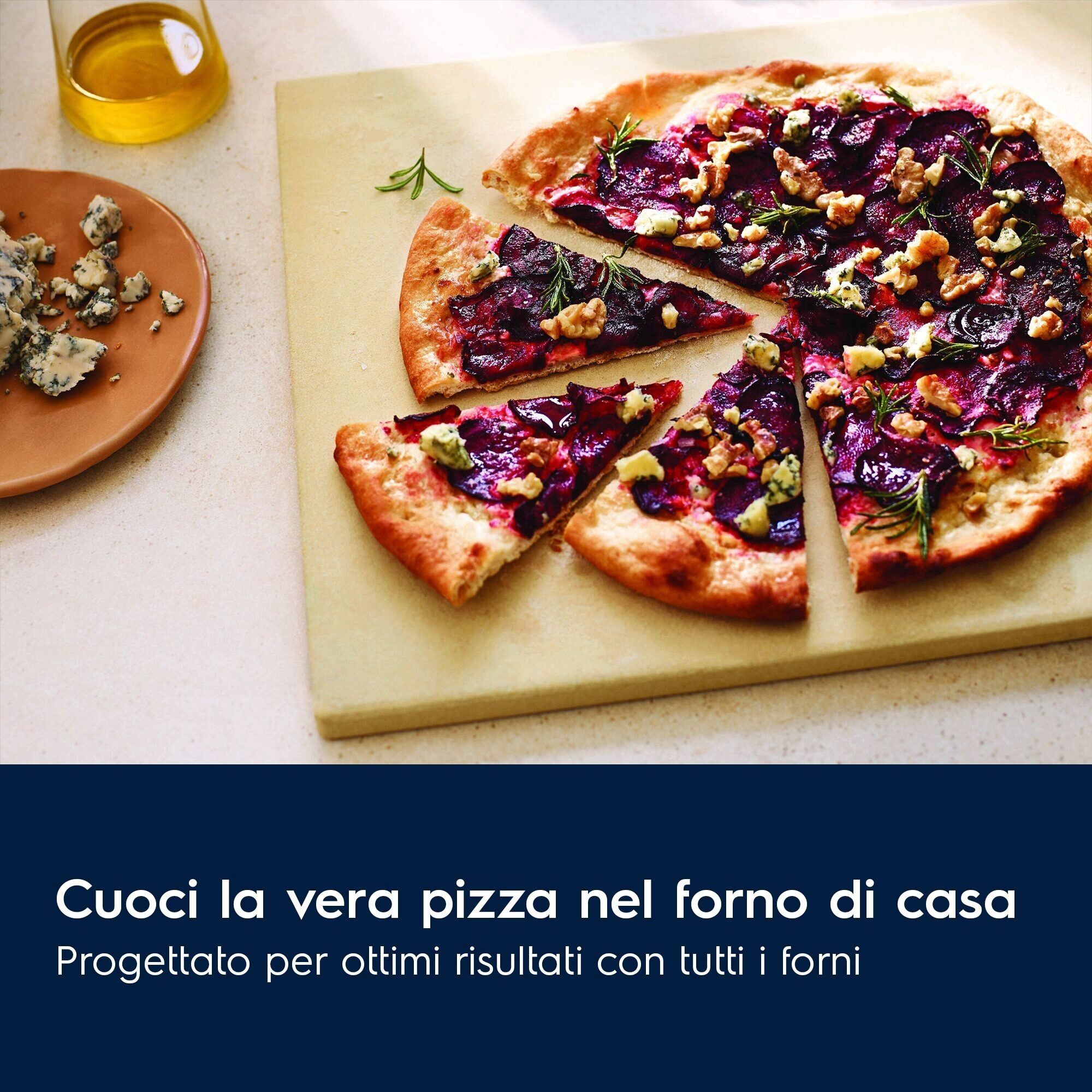 Realizzata in materiali estremamente resistenti, la nostra pietra per pizza è caratterizzata da una distribuzione del calore rapida e uniforme. Le farciture saranno ancora più saporite, con una crosta croccante al punto giusto.