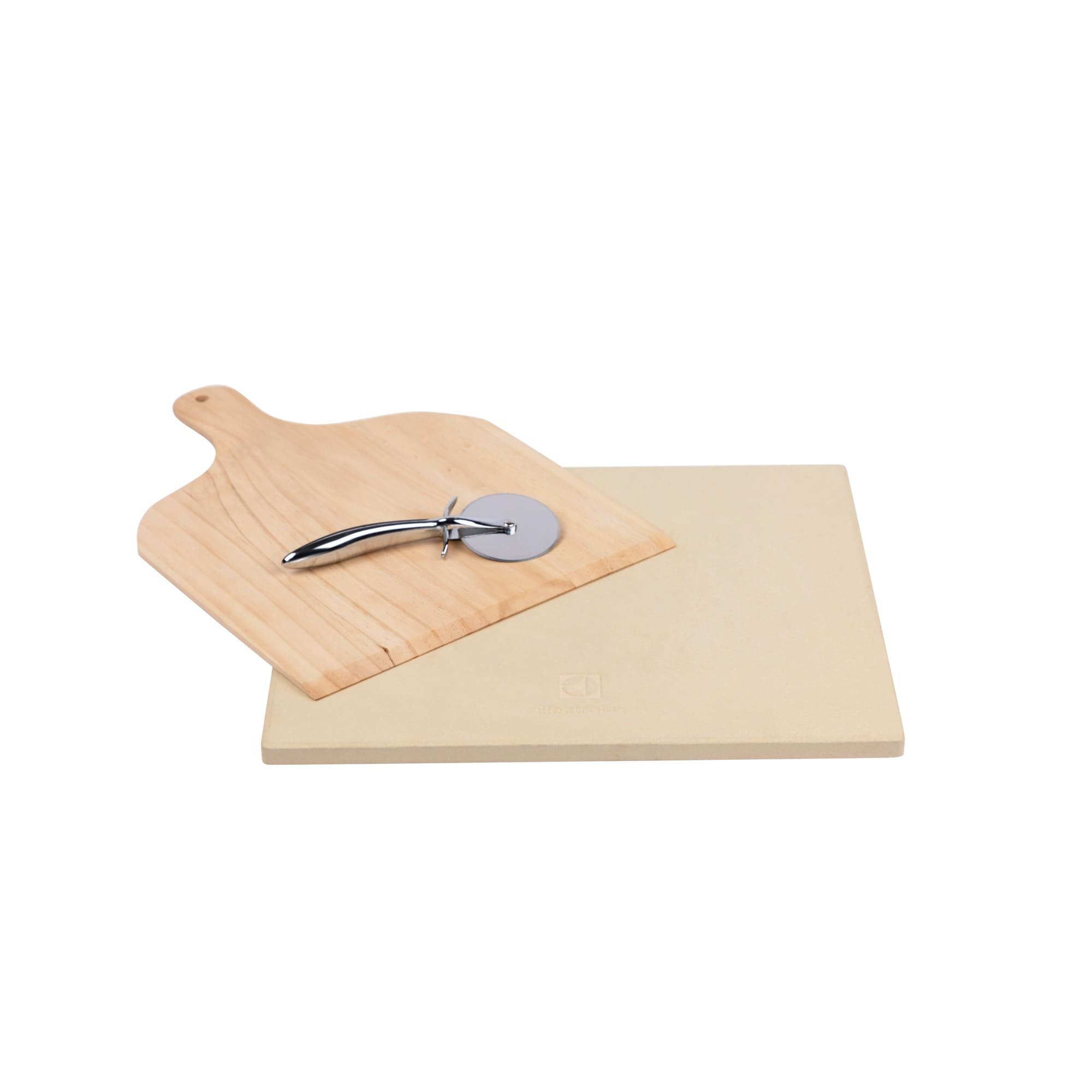 Crea delle ricette deliziose con gli strumenti selezionati del nostro kit per pizza. La pietra refrattaria costituisce una base di cottura durevole, la paletta in legno consente di trasferire perfettamente la pizza dalla pietra al piatto, mentre la rotella taglia pizza in acciaio inox permette di servire delle fette perfette.