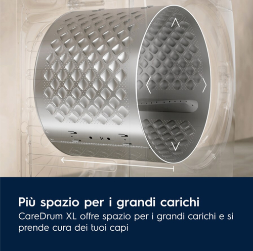 | Programmi di lavaggio | Cotone, Delicati/Seta, Piumino/piumone, Eco 40-60°C, Ricambio dell'aria a scopo igienico, Igiene/Allergy Care, Jeans/denim, Esterno, Rapido, Risciacquo, Centrifuga/scarico, Sintetico, Lana |
