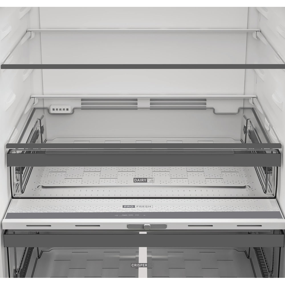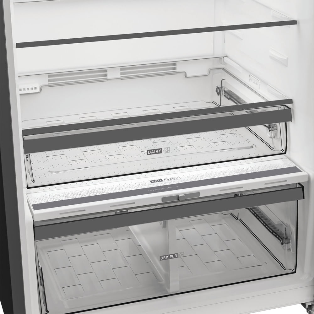 Due sistemi di raffreddamento indipendenti No Frost creano l'ambiente ideale per la conservazione degli alimenti, senza formazioni di brina, garantendo la temperatura e l'umidità ideali ed evitando la miscelazione degli odori all'interno della cavità. Puoi posizionare frutta e verdura ovunque nel frigorifero, Dual No Frost le manterrà fresche fino a 15 giorni*.