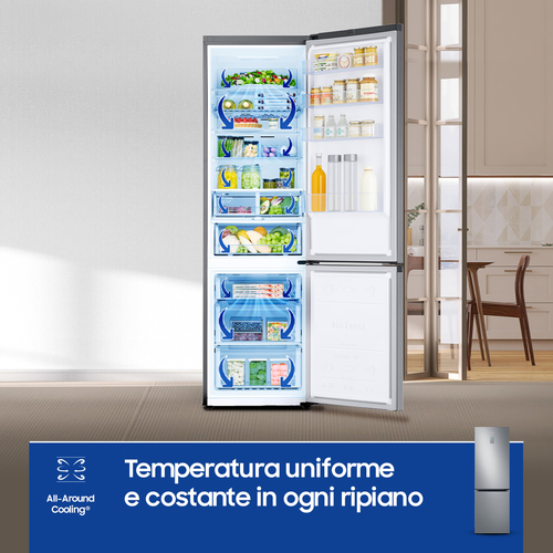 * Test condotti da Intertek sui modelli RB38T7B6BS9 e RB31FERNDWW/WT, basati sull’analisi APC (conta aerobica su piastra) di campioni di alimenti dopo la conservazione in unità di prova. Applicabile impostando la modalità MAX. I risultati possono variare in base al grado di freschezza prima della conservazione, alle condizioni d’uso e a vari altri fattori.