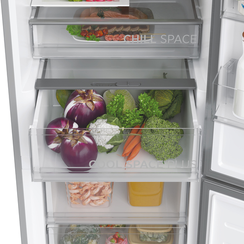 Il Cool Space Plus, grazie al controllo dell'umidità, è il luogo ideale per conservare frutta e verdura mantenendoli sempre freschi. Sposta il cursore e imposta il giusto livello di umidità nel cassetto per una perfetta conservazione.