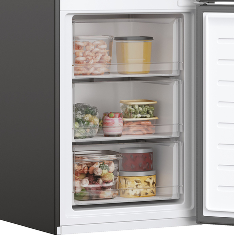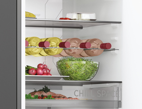 La gestione dello spazio personalizzabile ti permette di organizzare la disposizione del tuo frigorifero combinato a seconda delle tue esigenze, grazie ai balconcini e ai ripiani estraibili e ai cassetti dedicati per un massimo di 100 diverse combinazioni.