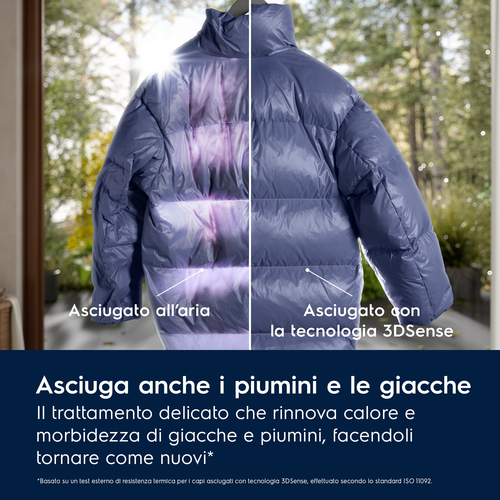 | Programmi di asciugatura | Cotone, Delicati/Seta, Piumino/piumone, Eco, Igiene/Allergy Care, Jeans/denim, Mix, Outdoor/sport, Refresh, Sport, Sintetico, Lana |
