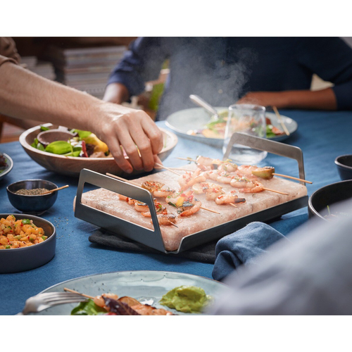 Grazie alla nostra Piastra di Sale, i cibi mantengono la giusta temperatura. La superficie rimane calda o fredda, così si possono servire dessert freddi direttamente dal congelatore o piatti sfrigolanti dal piano cottura o dal forno.