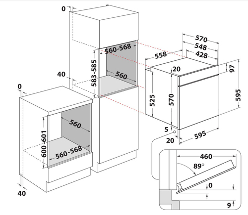 | Larghezza dello scomparto di installazione (min) | 56 cm |