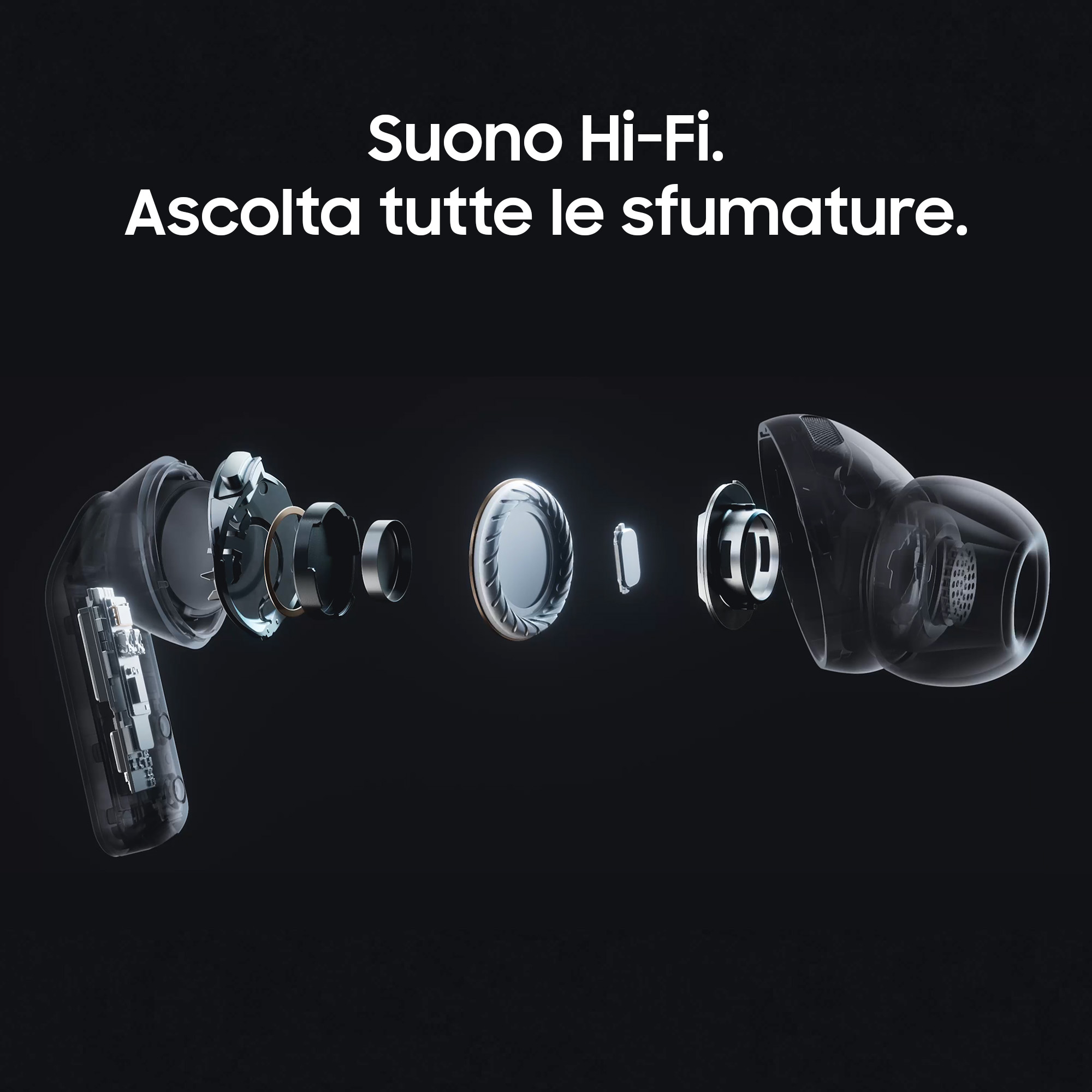 Con Galaxy Buds4 Pro vivi un’esperienza smart e senza interruzioni. Grazie ai cenni e ai movimenti intuitivi puoi gestire chiamate e funzioni con Galaxy AI senza alzare un dito, perfetto quando hai le mani occupate o non puoi parlare. L’Interprete potenziato da Galaxy AI ti aiuta a superare le barriere linguistiche: ascolti la traduzione direttamente negli auricolari e leggi sul tuo smartphone Galaxy, per comunicazioni sempre chiare. Il design premium in metallo unisce eleganza e comfort ergonomico, ideale per tutto il giorno. Il sofisticato altoparlante a 2 vie con doppi amplificatori riduce le distorsioni e offre un suono ricco e bilanciato. Con l’Ultra High Quality Audio fino a 24-bit/96 kHz ogni dettaglio prende vita, mentre la tecnologia DNN e la Banda Superlarga assicurano chiamate cristalline anche in ambienti rumorosi. Compatte e pratiche, con custodia trasparente, sono pensate per seguirti ovunque.