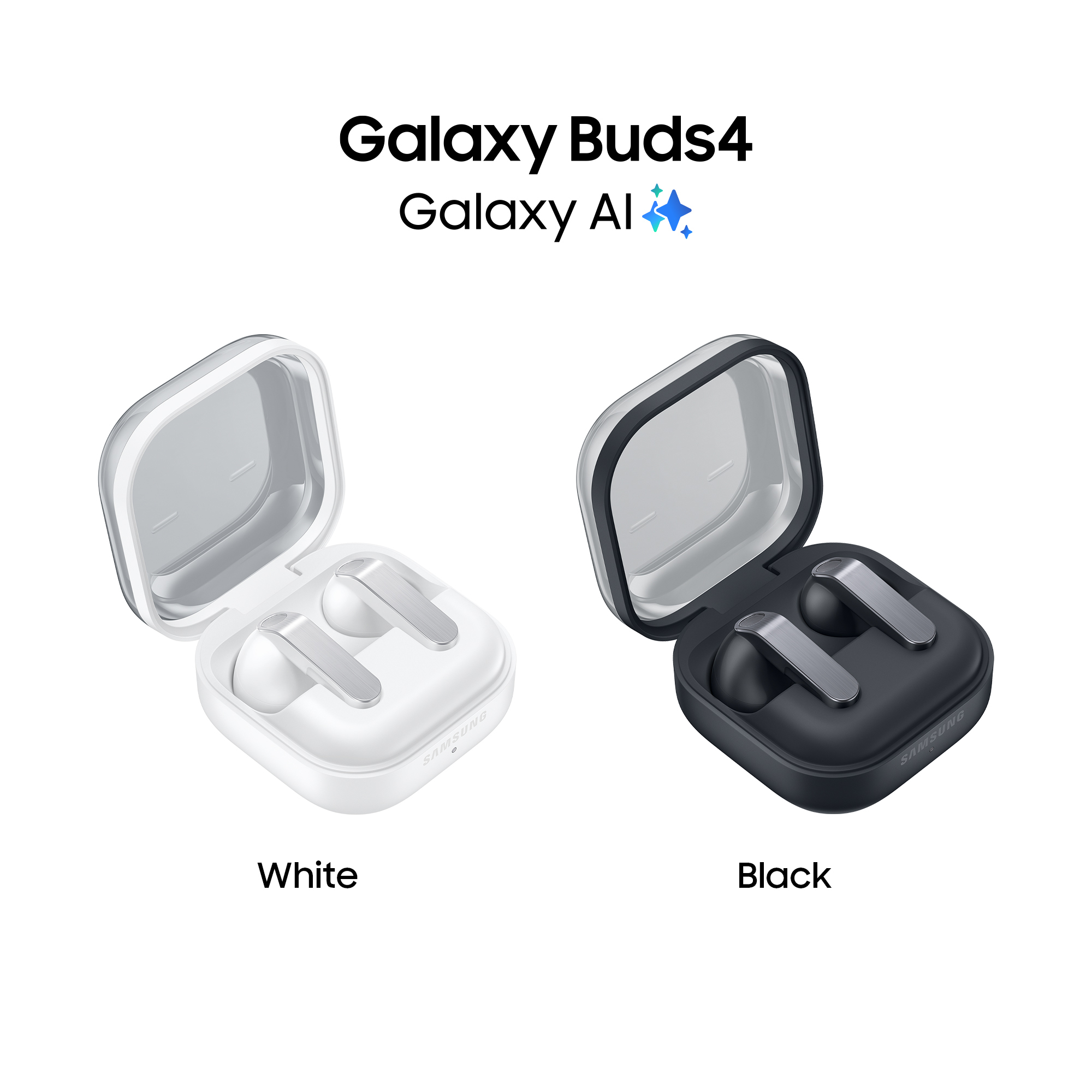 Samsung Galaxy Buds4, Nero, Corpo in metallo, Altoparlante a 1 via, equalizzatore adattivo, Chiamate cristalline, Audio a 360°, ANC, Controllo adattivo del rumore Connessione senza interruzioni e One