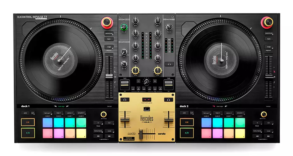 Hercules INPULSE T7 PREMIUM. Connessione cuffia: 3.5 mm/6.35 mm. Larghezza: 85 mm, Profondità: 260 mm, Altezza: 330 mm. Cavi inclusi: USB
