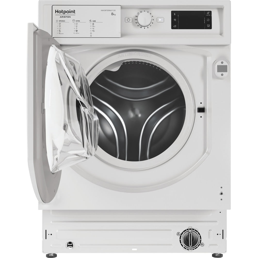 Hotpoint Ariston Lavatrice da incasso BI WMHG 81485 EU. Tipo di carica: Caricamento frontale. Capacità cestello: 8 kg, Classe di efficienza della centrifuga: B, Silenziosità (centrifuga): 70 dB, Velocità di centrifuga massima: 1400 Giri/min. Colore del prodotto: Bianco. Larghezza: 595 mm, Profondità: 545 mm, Altezza: 815 mm. Classe efficienza energetica: B