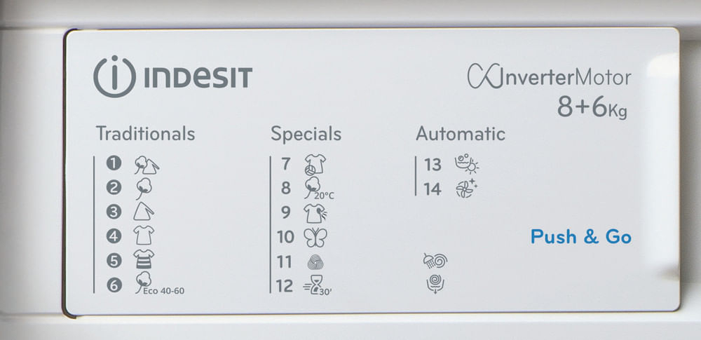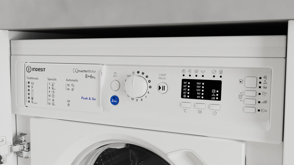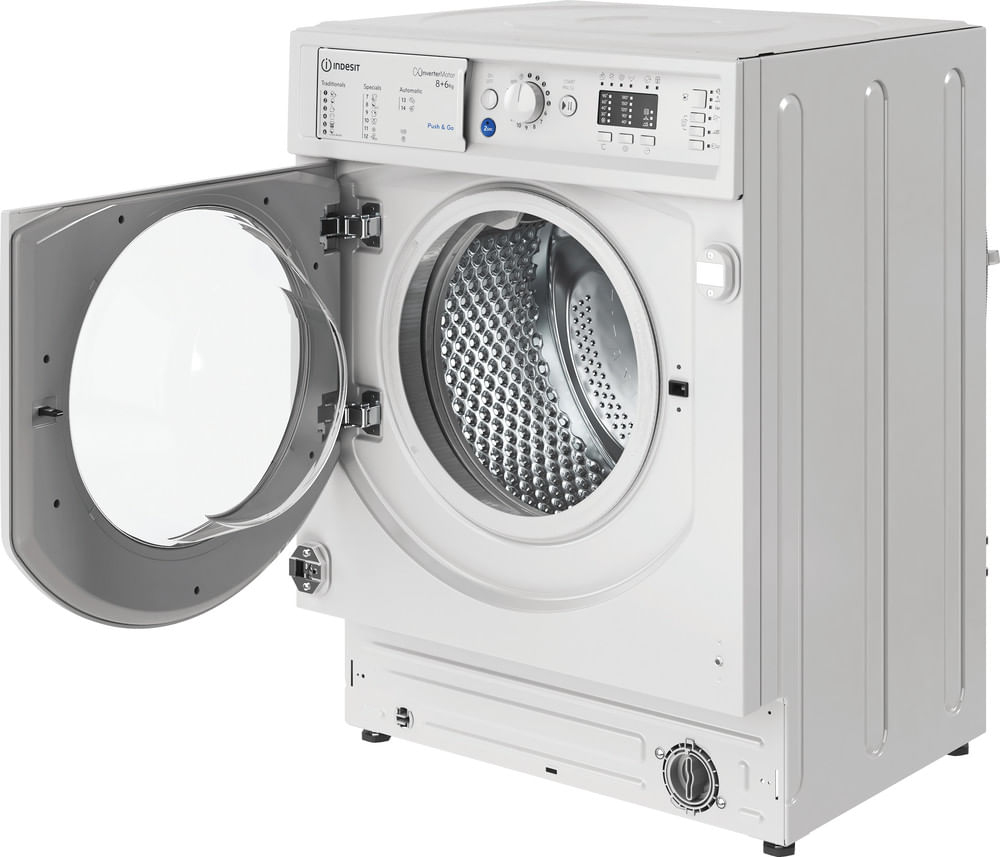 Caratteristiche di questa lavasciuga da incasso Indesit: capacità di 6,0 kg per l'asciugatura. Centrifuga a 1400 giri al minuto, rapida ed efficiente. Colore bianco.