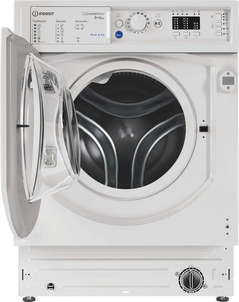 Indesit Lavasciuga da incasso BI WDIL 861485 EU - BI WDIL 861485 EU. Tipo di carica: Caricamento frontale, Posizionamento dell'apparecchio: Da incasso, Colore del prodotto: Bianco. Capacità di asciugatura: 6 kg, Velocità di centrifuga massima: 1400 Giri/min, Classe di efficienza della centrifuga: B. Classe di efficienza energetica (lavaggio): B, Classe di efficienza energetica( lavaggio e asciugatura): D, Consumo di acqua (lavaggio): 48 L. Durata della garanzia: 2 anno/i. Profondità: 545 mm, Larghezza: 595 mm, Altezza: 815 mm