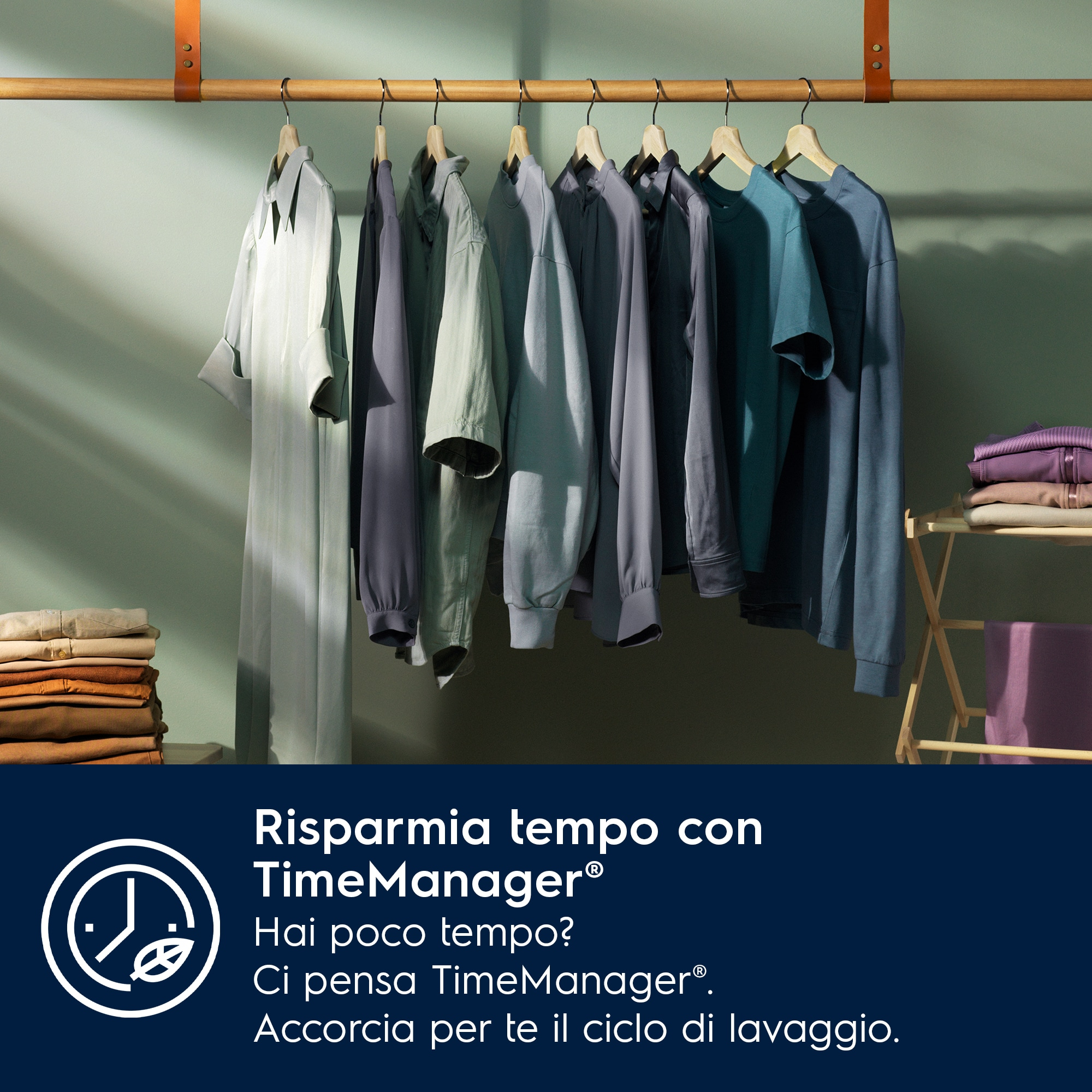 La nostra lavatrice a bassa rumorosità è progettata per un funzionamento silenzioso dietro la porta di un mobile. In questo modo puoi fare un ciclo mantenendo un ambiente calmo e rilassato per tutte le altre tue attività.Poco tempo? Nessun problema! Quando hai bisogno di fare un bucato in fretta, TimeManager® è dalla tua parte: accorcia il programma di lavaggio così da adattarlo ai tuoi ritmi.