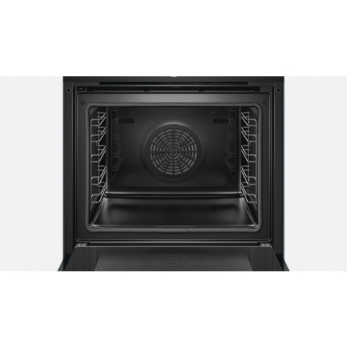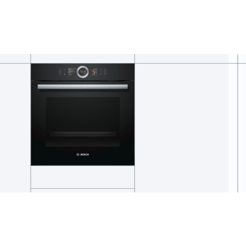 Bosch Serie 8 HBG676EB6. Dimensione del forno: Media, Tipo di forno: Forno elettrico, Capacità interna forno totale: 71 L. Posizionamento dell'apparecchio: Da incasso, Colore del prodotto: Nero, Tipo di controllo: Sensore, Touch. Tipo di orologio: Elettronico, Tipo di timer: Digitale. Consumo energetico (convenzionale): 0,87 kWh, Consumo energetico (convezione forzata): 0,69 kWh, Carico di collegamento: 3650 W. Larghezza del compartimento: 59,5 cm, Profondità del compartimento: 56,8 cm, Altezza del compartimento: 55 cm