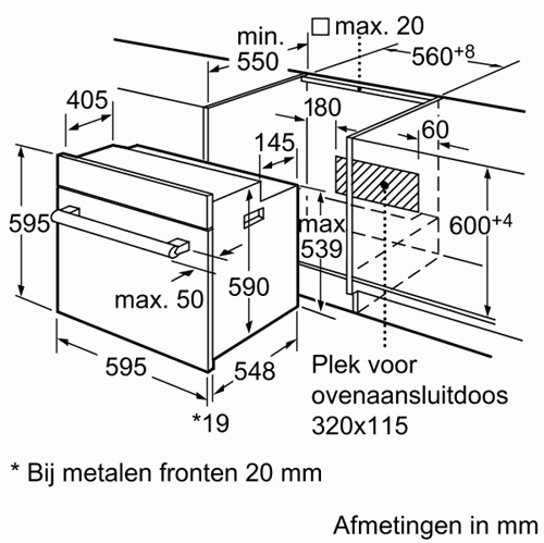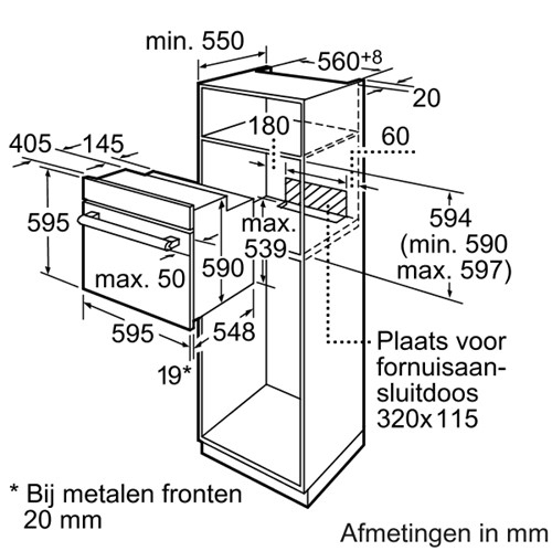 | Dimensioni del compartimento di installazione | 560 x 550 x 590 mm |