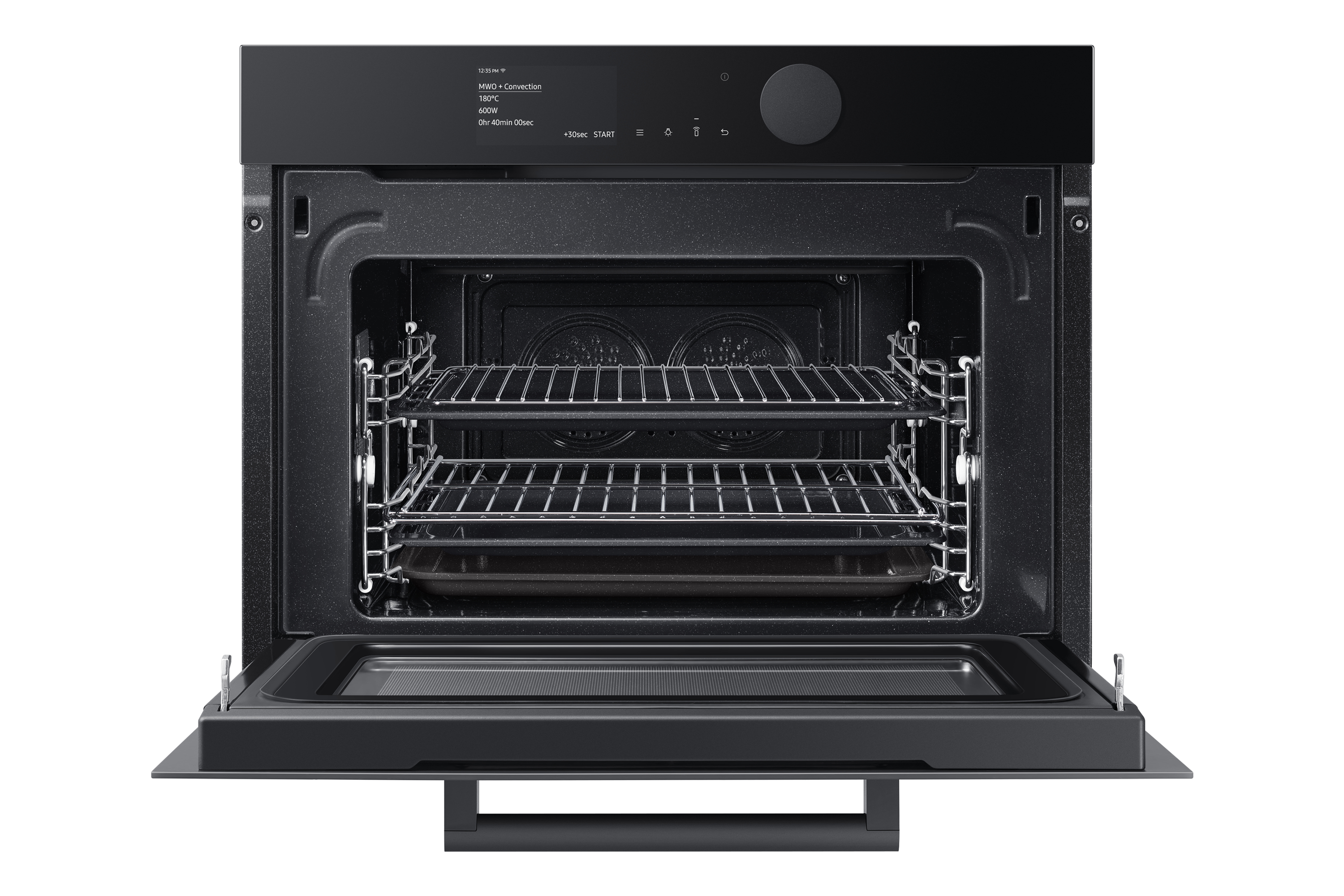 * Funziona solo quando la connettività Wi-Fi del forno è attiva. È possibile gestire il forno da remoto, ma le funzioni del microonde sono escluse per motivi di sicurezza.** Disponibile su dispositivi Android e iOS. Sono necessari una connessione Wi-Fi e un account Samsung.*** Il prodotto sopra raffigurato potrebbe differire dal prodotto effettivo.