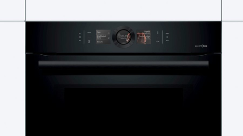 Bosch Serie 8 HMG8764C6. Dimensione del forno: Media, Tipo di forno: Forno elettrico, Capacità interna forno totale: 67 L. Colore del prodotto: Nero, Tipo di controllo: Touch, Posizione di controllo: Frontale. Tensione di ingresso AC: 220 - 240 V, Frequenza di ingresso AC: 50 / 60 Hz, Corrente: 16 A. Tipo di lampada: LED. Larghezza: 594 mm, Altezza: 595 mm, Larghezza del compartimento: 56,8 cm