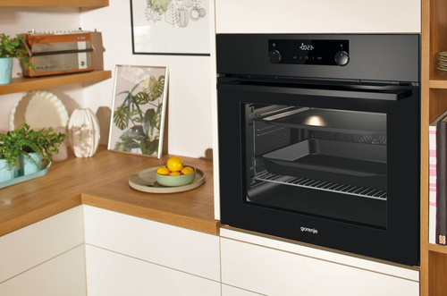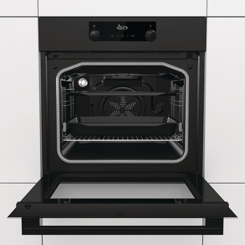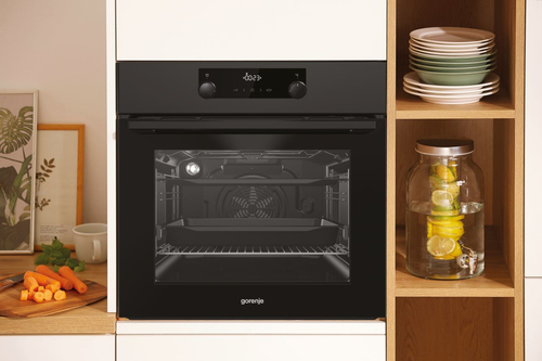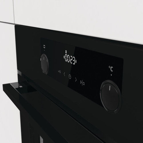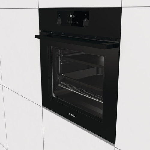 Gorenje BOP737E20B. Dimensione del forno: Media, Tipo di forno: Forno elettrico, Capacità interna forno totale: 70 L. Posizionamento dell'apparecchio: Da incasso, Colore del prodotto: Nero, Tipo di controllo: Manopola, Touch. Tipo di orologio: Elettronico. Consumo energetico (convenzionale): 0,98 kWh, Consumo energetico (convezione forzata): 0,66 kWh, Scala di efficienza energetica: Da A+++ a D. Larghezza del compartimento: 56,8 cm, Profondità del compartimento: 55 cm, Altezza del compartimento: 60 cm