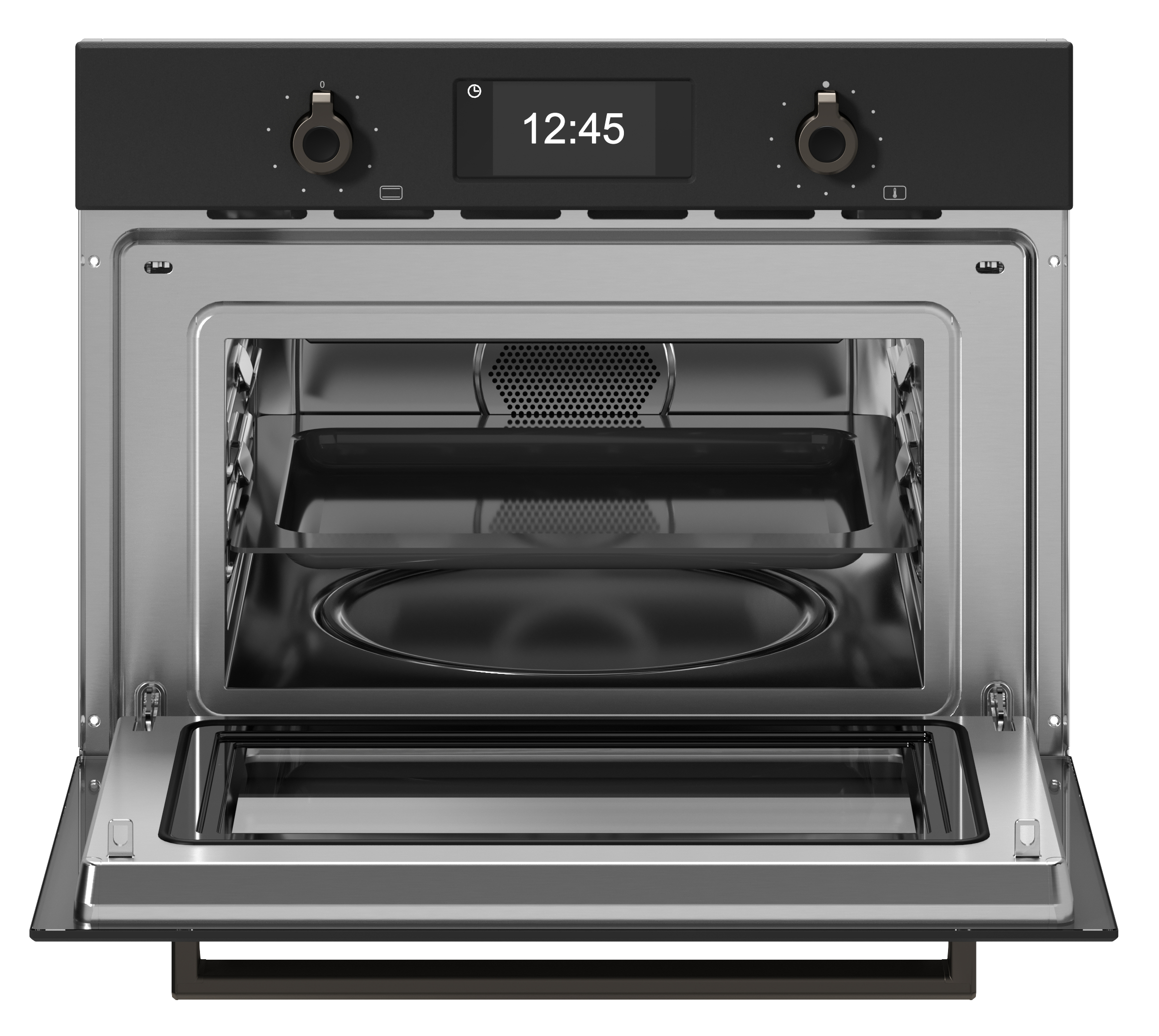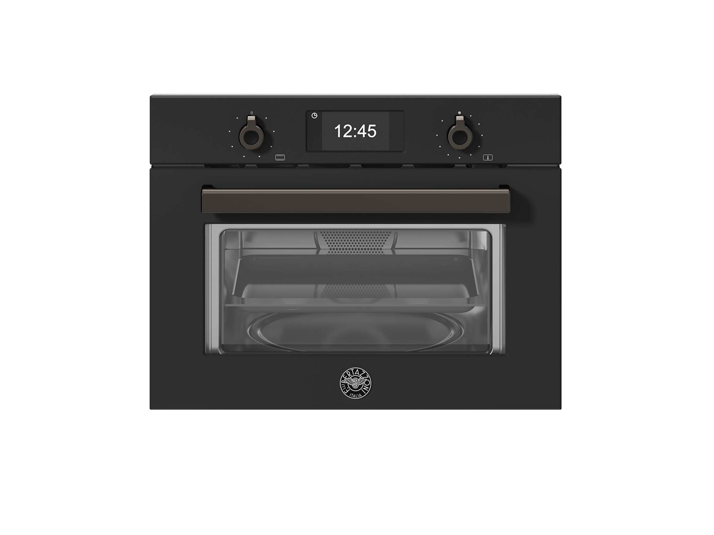 Bertazzoni F457PROMWTN. Dimensione del forno: Piccolo, Tipo di forno: Forno elettrico, Capacità interna forno totale: 32 L. Posizionamento dell'apparecchio: Da incasso, Colore del prodotto: Nero, Tipo di controllo: Manopola. Corrente: 16 A, Potenza: 2950 W, Protezione minima del fusibile: 16 A. Quantità lampade: 1 lampada(e), Tipo di lampada: Alogena, posizione delle illuminazioni: Alto. Larghezza del compartimento: 56,8 cm, Profondità del compartimento: 56 cm, Altezza del compartimento: 46 cm