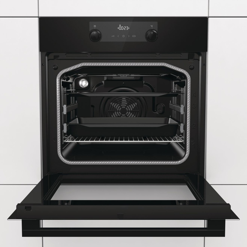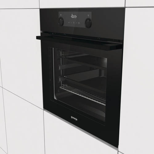 Gorenje BPS737E301BG. Dimensione del forno: Media, Tipo di forno: Forno elettrico, Capacità interna forno totale: 70 L. Posizionamento dell'apparecchio: Da incasso, Colore del prodotto: Nero, Tipo di controllo: Manopola. Classe efficienza energetica: A+, Consumo energetico (convenzionale): 0,98 kWh, Consumo energetico (convezione forzata): 0,66 kWh. Larghezza del compartimento: 56,8 cm, Profondità del compartimento: 55 cm, Altezza del compartimento: 60 cm. Larghezza imballo: 635 mm, Profondità imballo: 680 mm, Altezza imballo: 660 mm