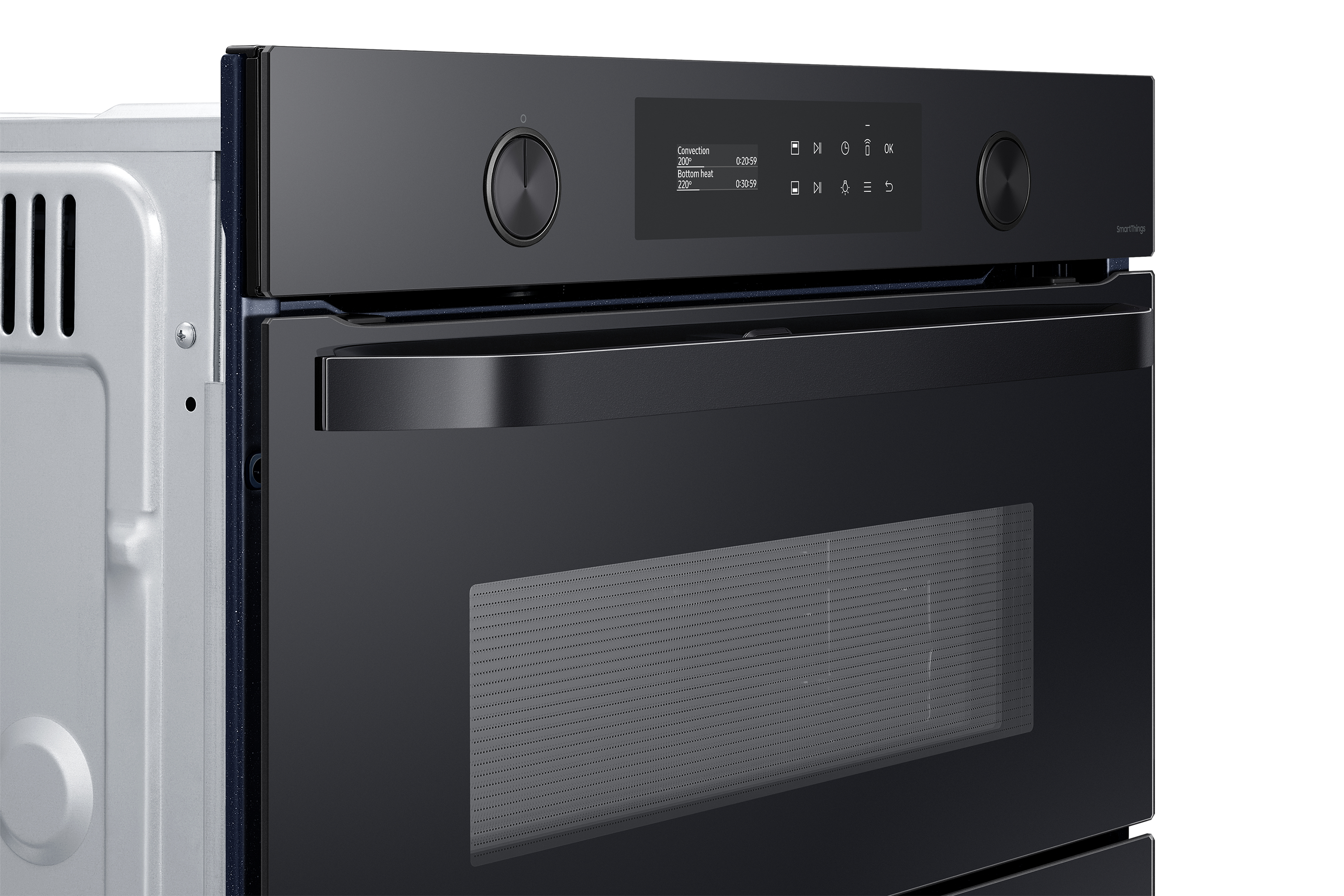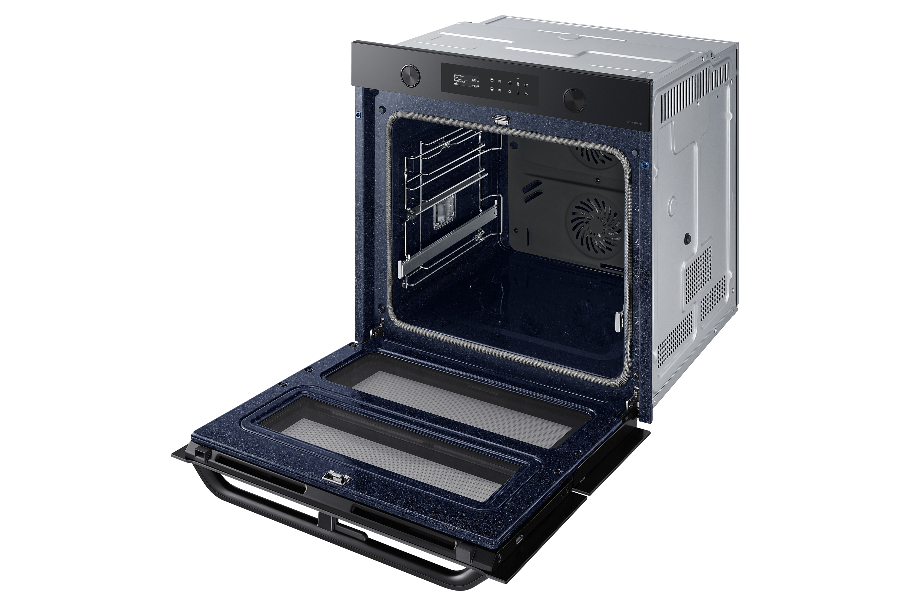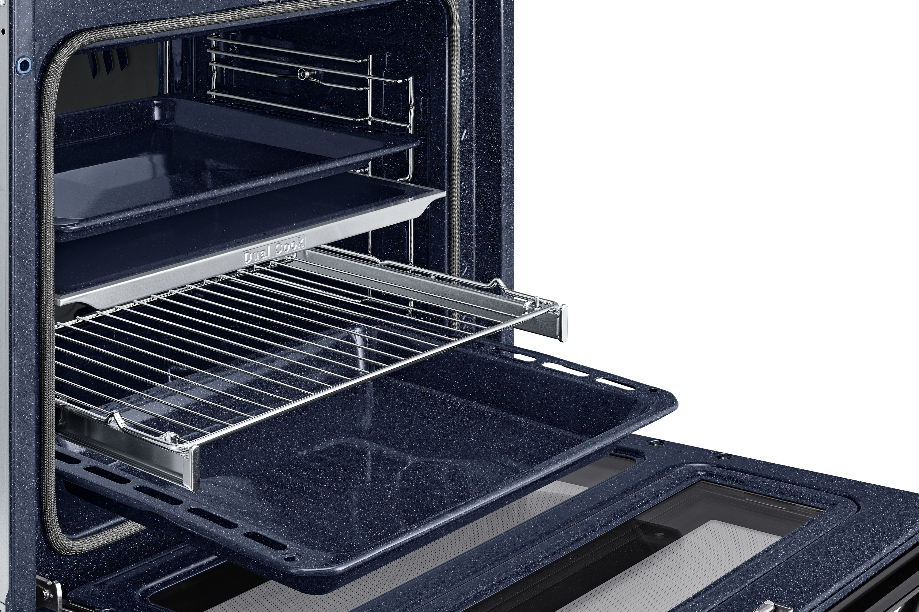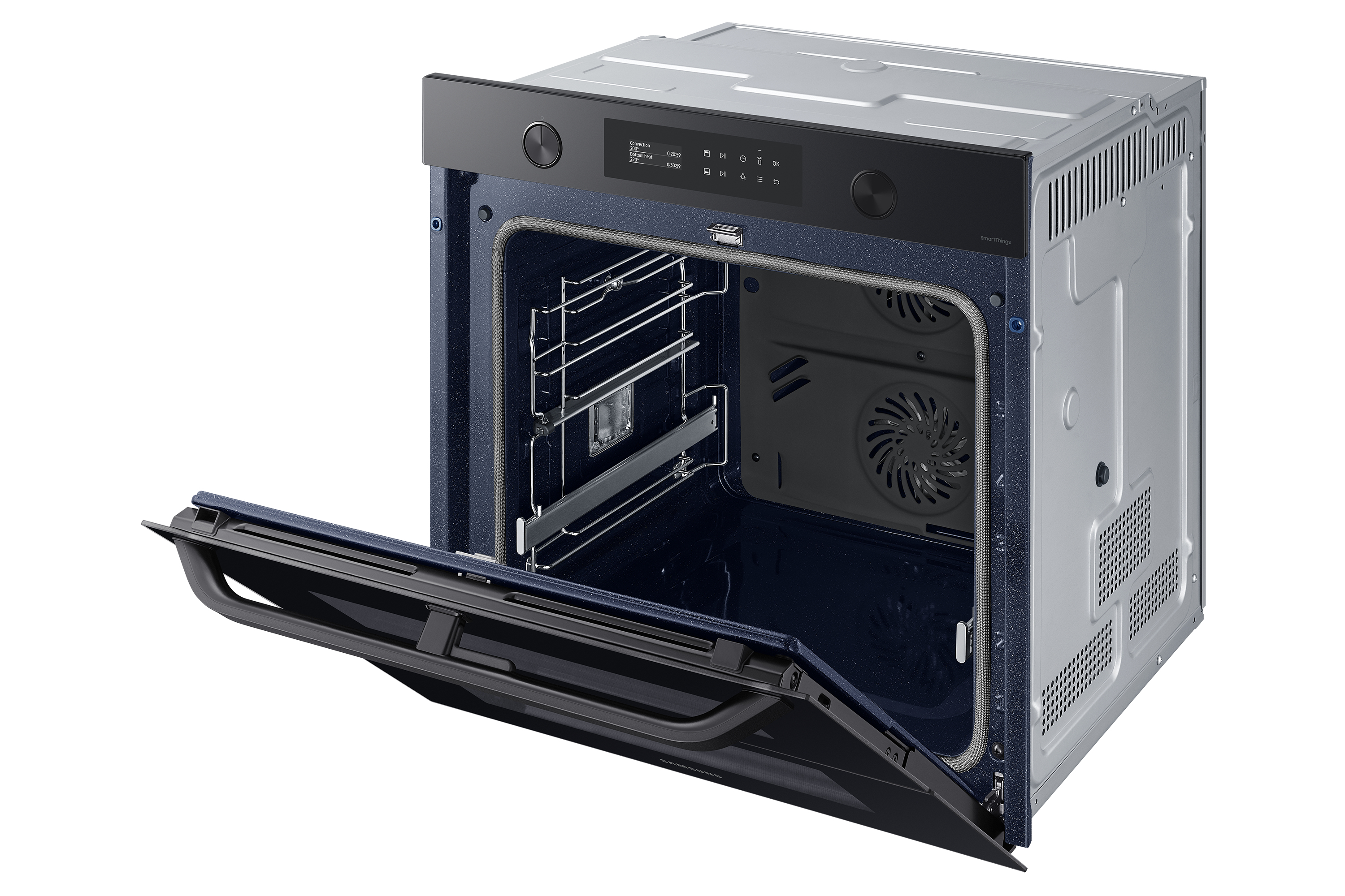 Sfrutta la maggiore versatilità del tuo forno per cucinare in modo più efficiente e dare più sapore ai tuoi piatti. Una porta incernierata e il sistema Dual Cook ti permettono di utilizzare contemporaneamente la zona superiore e quella inferiore con impostazioni diverse. Un display LCD ti consente di cucinare in modo intuitivo. E SmartThings Cooking* rende la tua esperienza in cucina ancora più fluida.