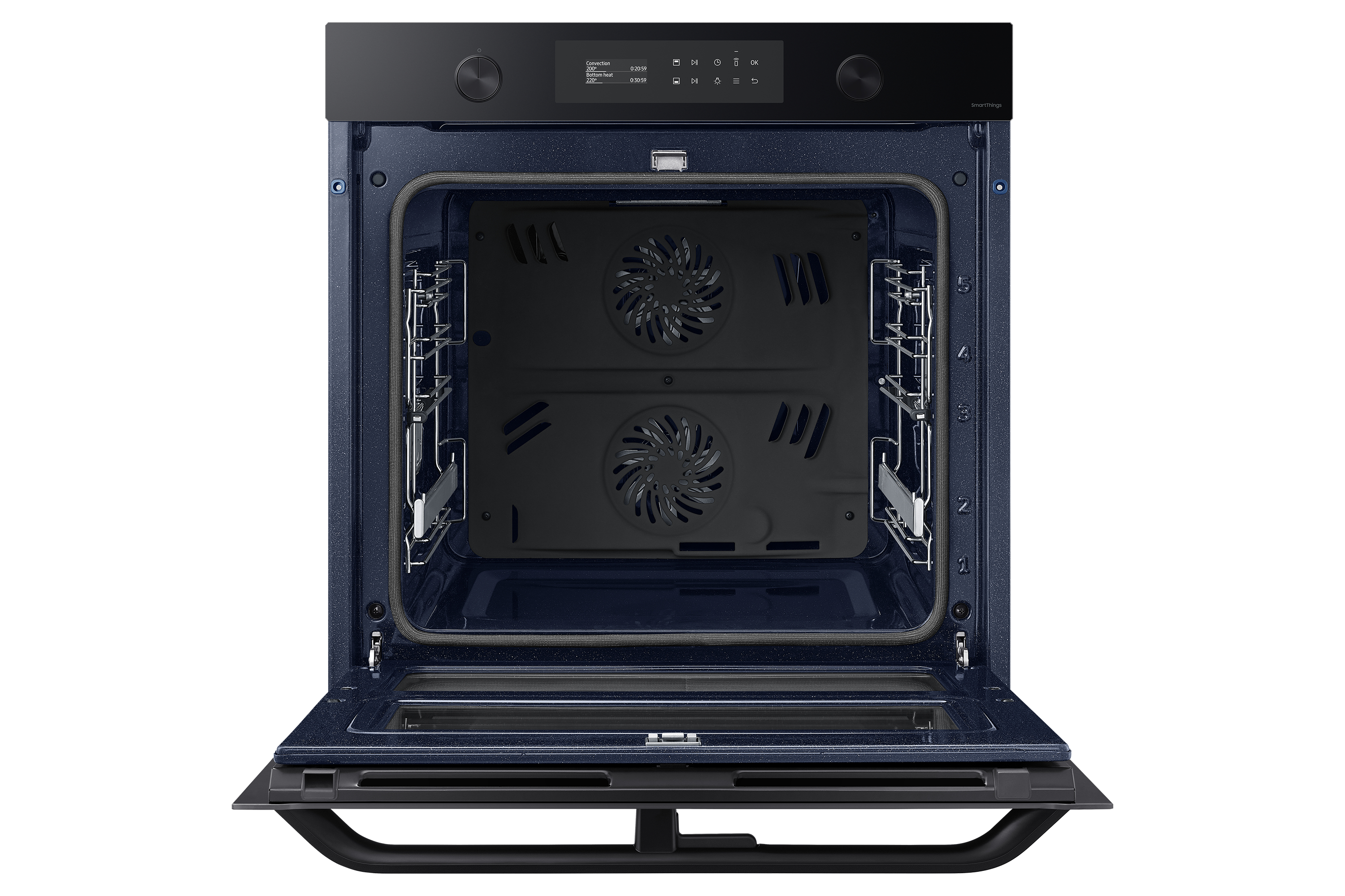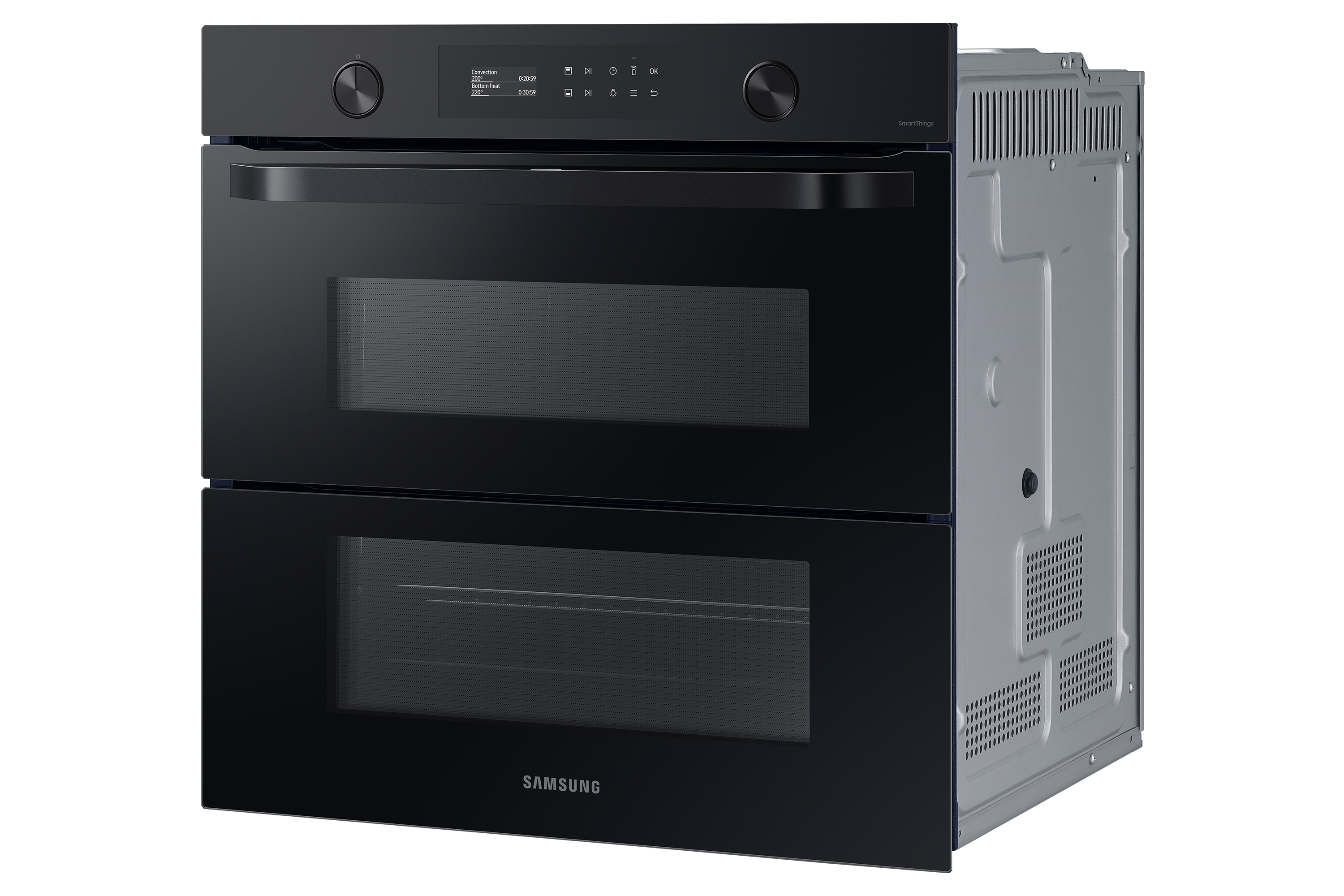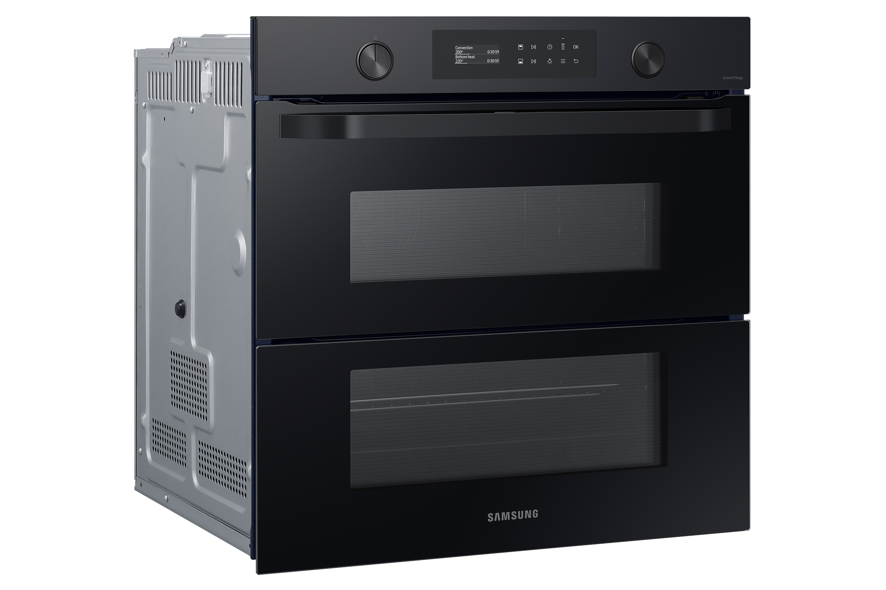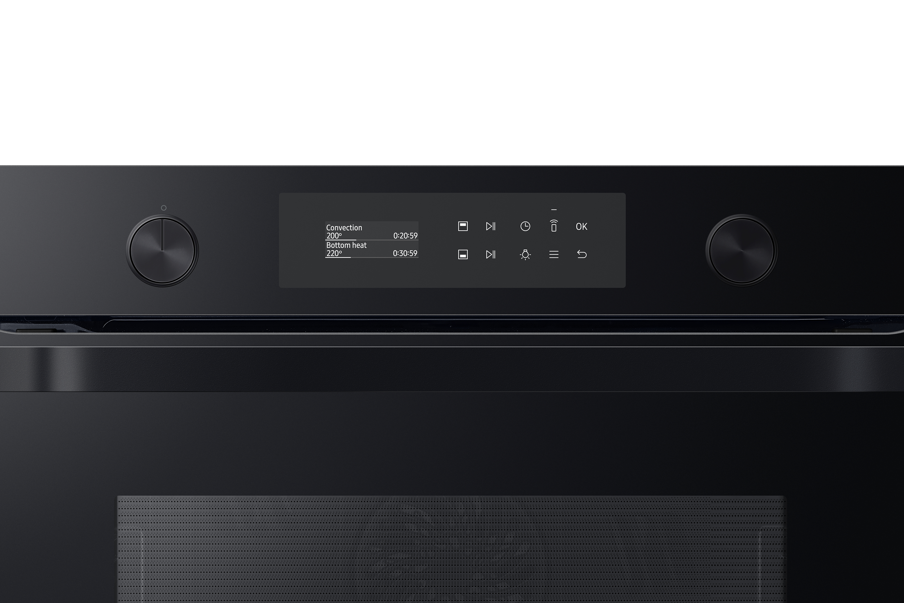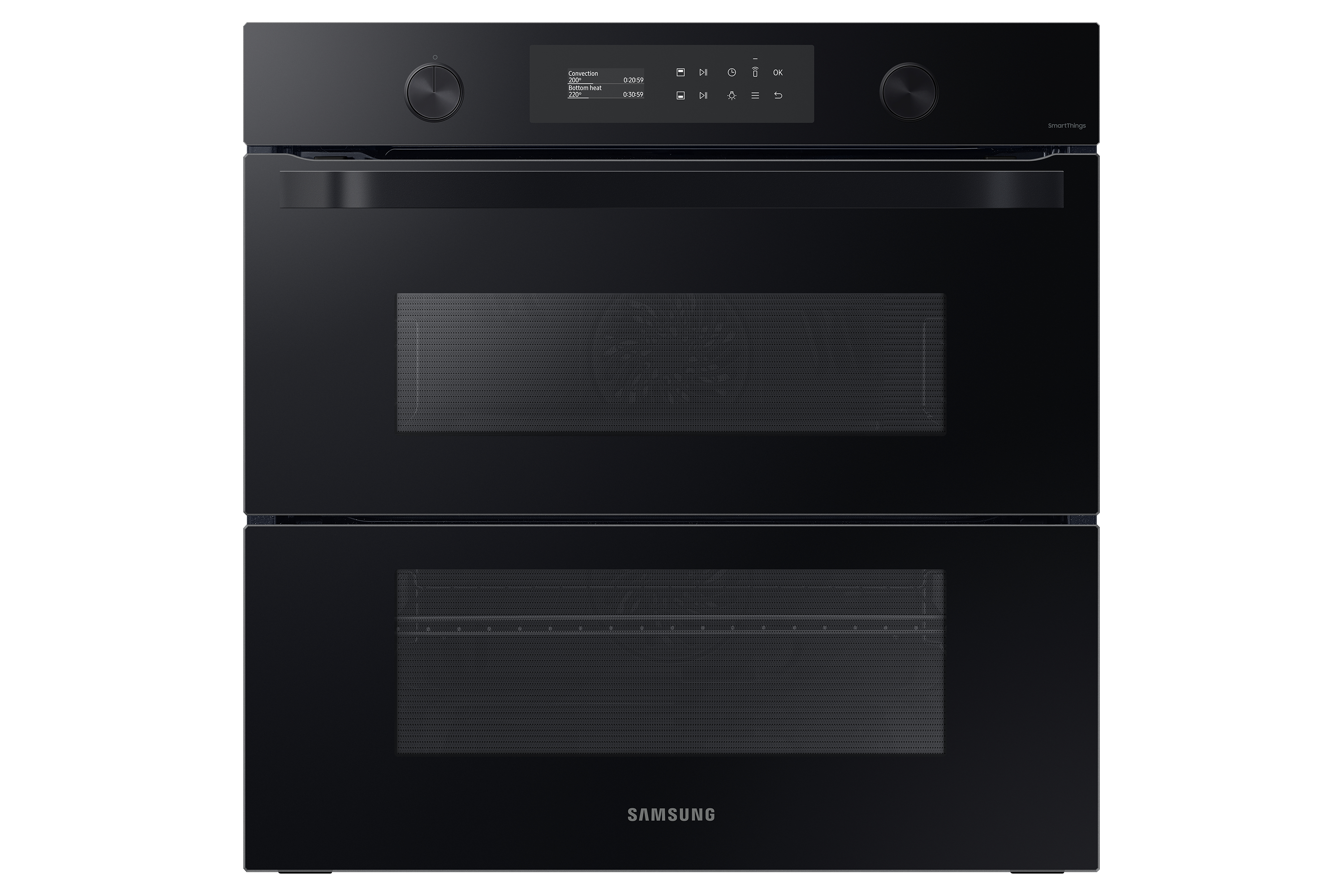 Sfrutta la maggiore versatilità del tuo forno per cucinare in modo più efficiente e dare più sapore ai tuoi piatti. Una porta incernierata e il sistema Dual Cook ti permettono di utilizzare contemporaneamente la zona superiore e quella inferiore con impostazioni diverse. Un display LCD ti consente di cucinare in modo intuitivo. E SmartThings Cooking* rende la tua esperienza in cucina ancora più fluida.