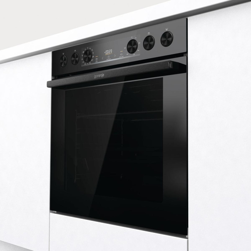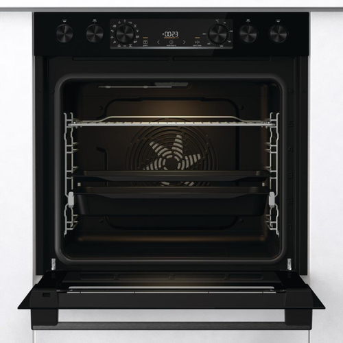 Gorenje BCS6737E06BG. Dimensione del forno: Largo, Tipo di forno: Forno elettrico, Capacità interna forno totale: 77 L. Posizionamento dell'apparecchio: Da incasso, Colore del prodotto: Nero, Tipo di controllo: Manopola, Touch. Tipo di orologio: Elettronico, Tipo di timer: Digitale, Modalità di impostazione del timer: Timer. Consumo energetico (convenzionale): 0,97 kWh, Consumo energetico (convezione forzata): 0,82 kWh, Scala di efficienza energetica: Da A+++ a D. Tipo di lampada: Alogena