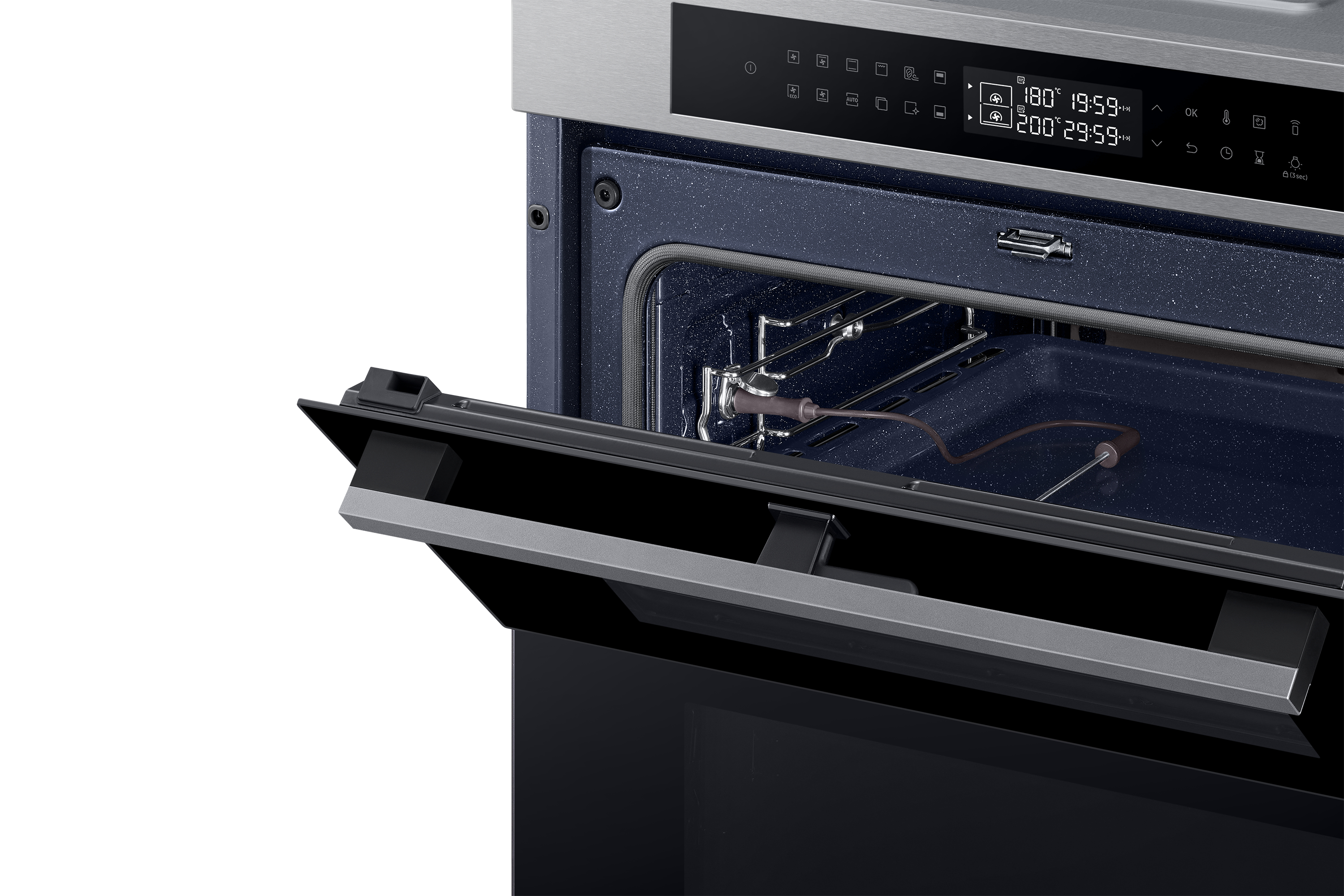 Prepara piatti diversi in modo più versatile ed efficiente. Le zone di cottura superiore e inferiore di Dual Cook Flex™ funzionano in modo indipendente. Utilizza la zona superiore per le pietanze più piccole, entrambe le zone con impostazioni diverse per temperatura e tempi di cottura, oppure lintero forno per cibi voluminosi. Grazie alla doppia porta puoi accedere facilmente alla parte superiore.