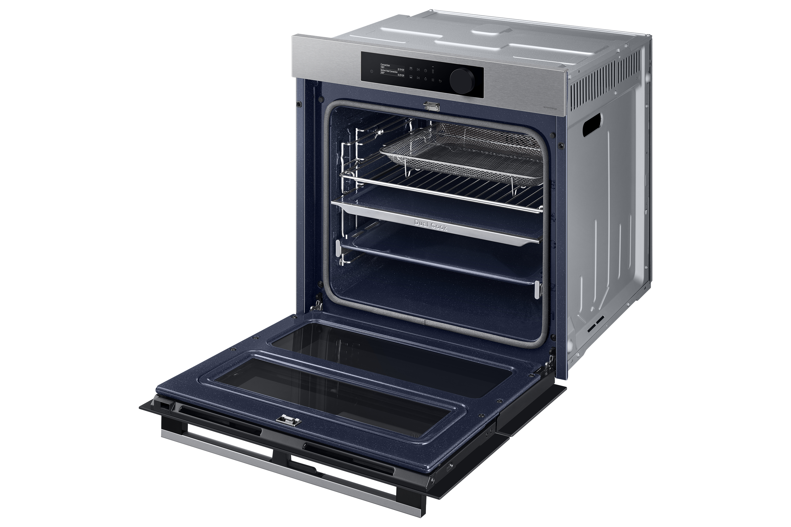 Grazie alla tecnologia Dual Cook, le zone di cottura superiore e inferiore del forno Dual Cook Flex™ funzionano in modo indipendente e permettono di cucinare nello stesso momento pietanze diverse con risultati ottimali. Potrai scegliere se utilizzare solo la zona superiore per i piatti più piccoli, lintero forno per quelli di dimensioni maggiori, oppure entrambe le zone contemporaneamente per preparazioni con cotture, temperature e tempi diversi, ottenendo comunque risultati perfetti. Inoltre, grazie alla doppia porta potrai accedere soltanto alla parte superiore del forno.