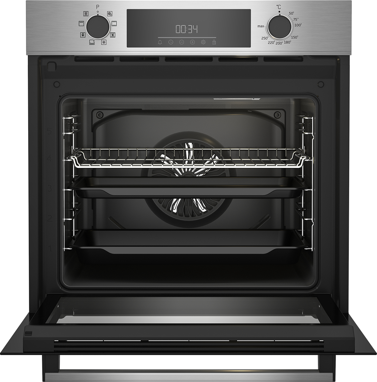 Beko BBIM12300XD: Forno Beyond Multifunzione, b300, 8 Funzioni. Dimensione del forno: Media, Tipo di forno: Forno elettrico, Capacità interna forno totale: 72 L. Posizionamento dell'apparecchio: Da incasso, Colore del prodotto: Acciaio inox, Tipo di controllo: Manopola, Touch. Tipo di orologio: Elettronico, Tipo di timer: Digitale. Consumo energetico (convenzionale): 0,88 kWh, Consumo energetico (convezione forzata): 0,81 kWh, Scala di efficienza energetica: Da A+++ a D. Quantità lampade: 1 lampada(e), Tipo di lampada: Alogena, posizione delle illuminazioni: Alto