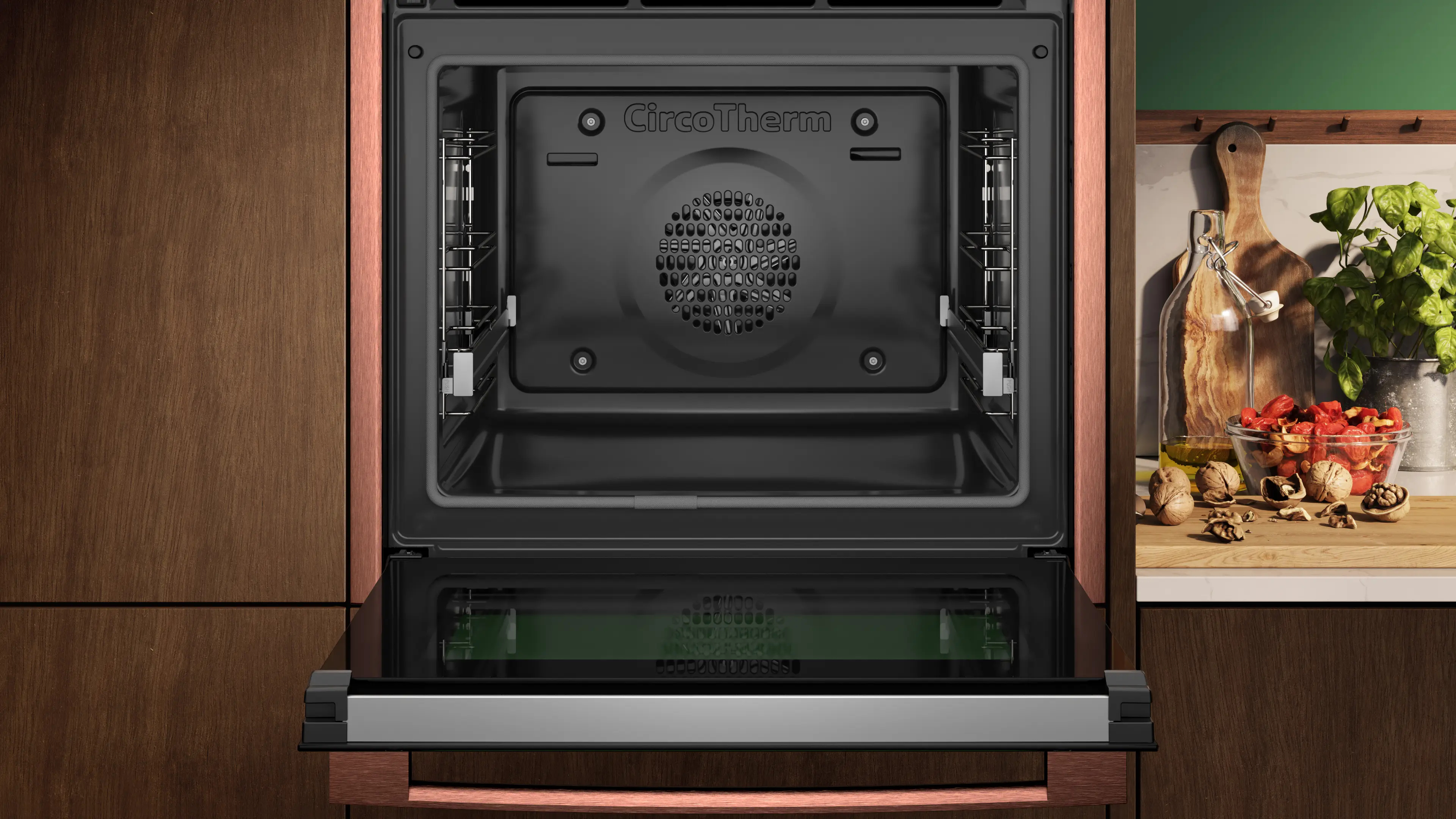 Vuoi cuocere tre teglie di deliziosi biscotti in una volta sola? Ora puoi con Circo Therm®. Il flusso d'aria mirato ad alta velocità assicura che i piatti siano cotti in modo uniforme senza il rischio che i sapori si mescolino. Puoi persino cuocere simultaneamente un magnifico arrosto e la tua torta preferita. CircoTherm® per cucinare contemporaneamente tutte le portate della tua cena, risparmiando tempo da dedicare ai tuoi ospiti.