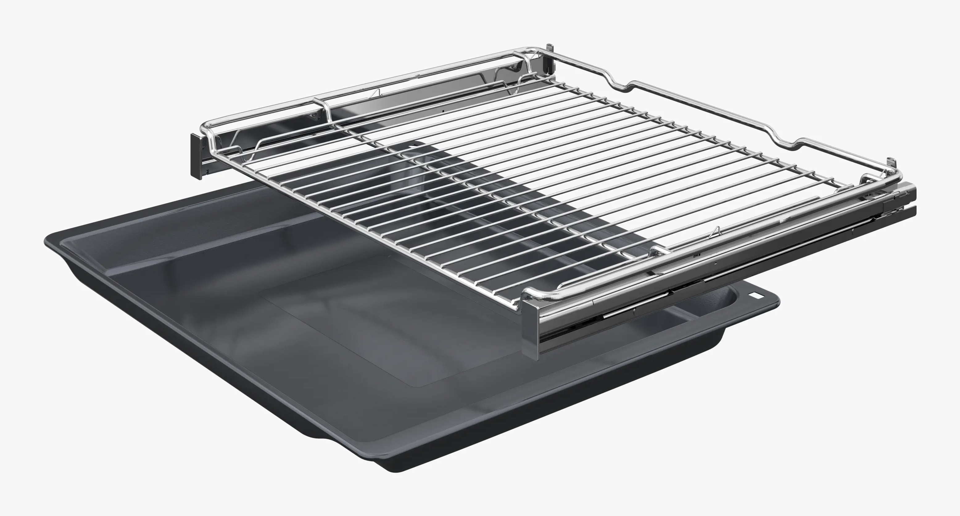 La cottura al forno è appena diventata più facile e sicura. Grazie alle guide telescopiche flessibili a estrazione totale, puoi far scorrere la griglia verso di te e posizionare facilmente le teglie dove vuoi. Le guide flessibili possono essere posizionate su qualsiasi livello e sono stabili in ogni posizione. Inoltre, estraendosi completamente dal forno potrai girare l'arrosto facilmente e senza paura di scottarti. Sicurezza. Facilità. Massima estensione.
