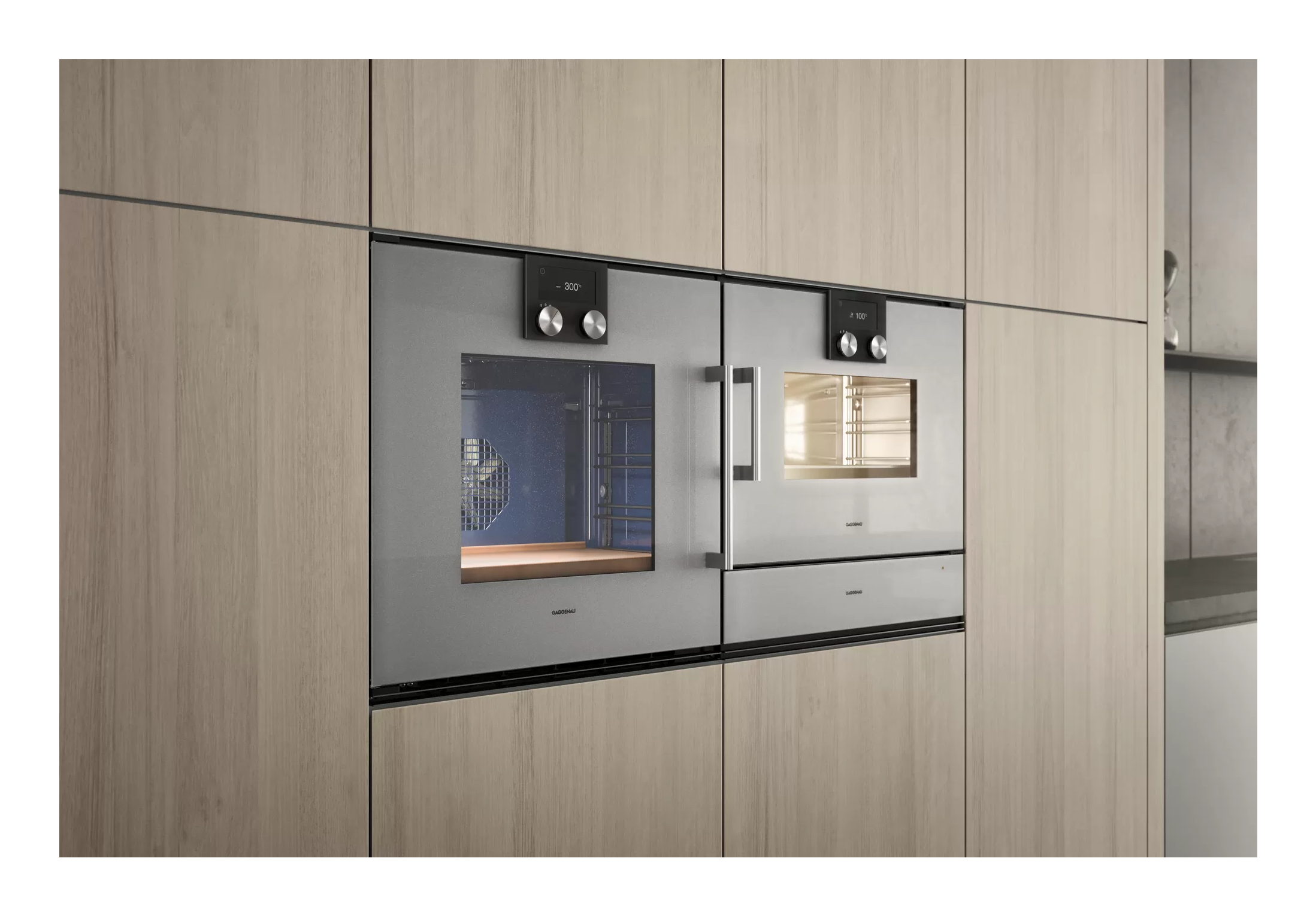Gaggenau Series 200 BOP211112. Dimensione del forno: Largo, Tipo di forno: Forno elettrico, Capacità interna forno totale: 76 L. Posizionamento dell'apparecchio: Da incasso, Colore del prodotto: Metallico, Tipo di controllo: Telecomando, Manopola, Touch. Tipo di timer: Digitale, Modalità di impostazione del timer: Tempo di cottura, Tempo di fine cottura, Long-term timer, Cronometro, Timer, Applicazioni per il controllo supportate: Home Connect. Classe efficienza energetica: A, Consumo energetico (convenzionale): 1,25 kWh, Consumo energetico (convezione forzata): 0,83 kWh. Quantità lampade: 1 lampada(e), Tipo di lampada: Alogena, Potenza lampadina: 60 W