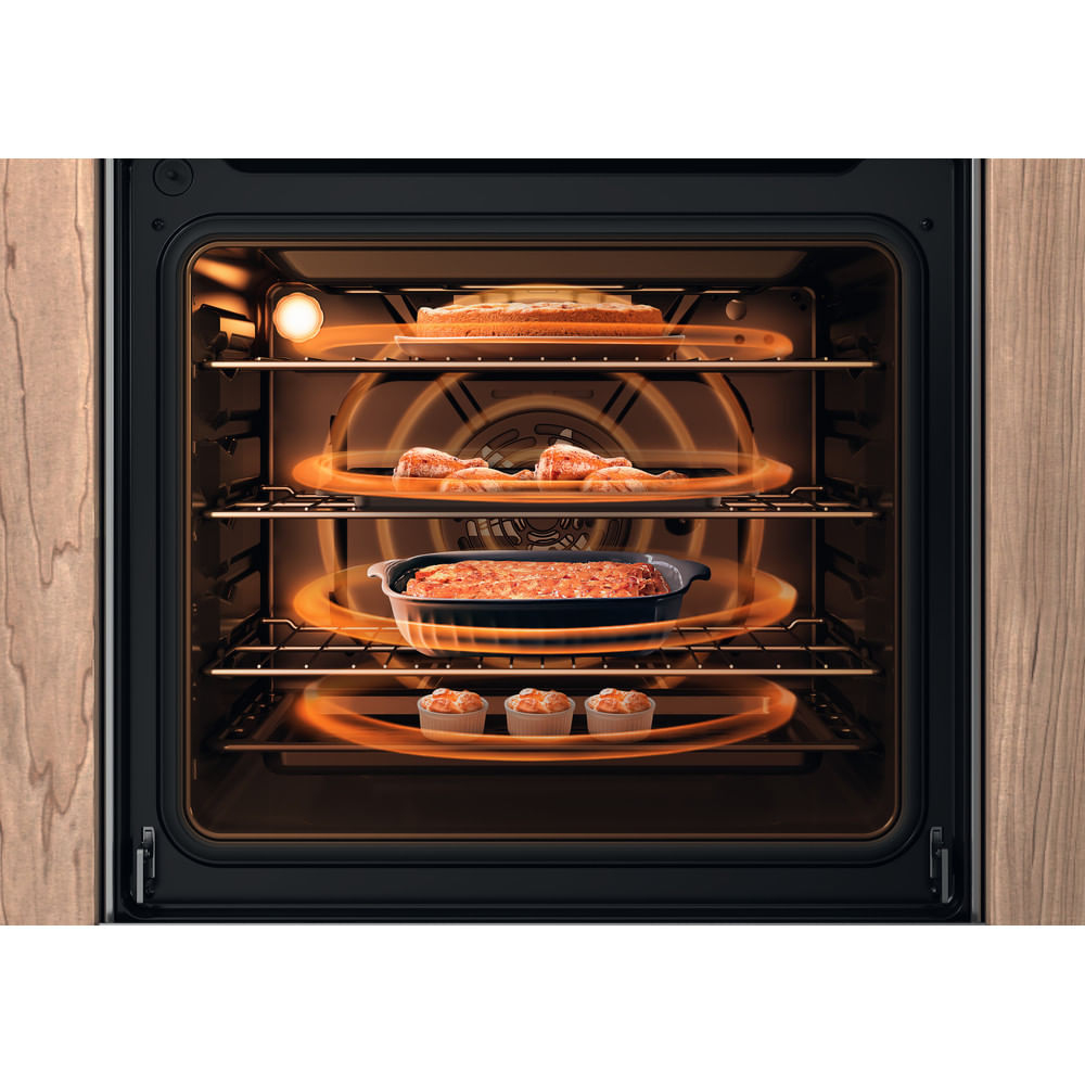Distribuzione omogenea del calore: garantisce una corretta distribuzione dell'aria nella cavità e consente di cuocere perfettamente fino a 3 livelli contemporaneamente.