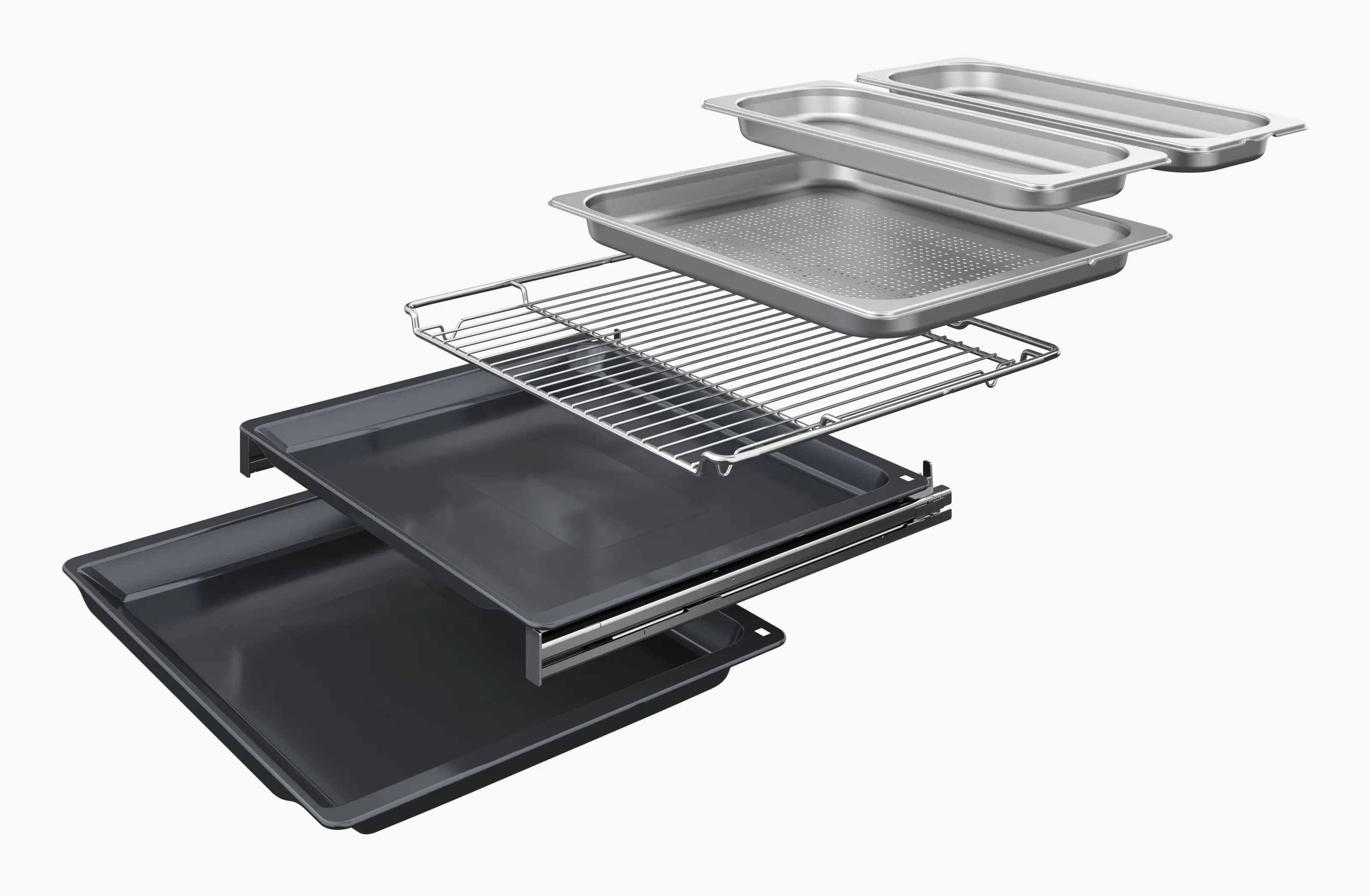 La cottura al forno è appena diventata più facile e sicura. Grazie alle guide telescopiche flessibili a estrazione totale, puoi far scorrere la griglia verso di te e posizionare facilmente le teglie dove vuoi. Le guide flessibili possono essere posizionate su qualsiasi livello e sono stabili in ogni posizione. Inoltre, estraendosi completamente dal forno potrai girare l'arrosto facilmente e senza paura di scottarti. Sicurezza. Facilità. Massima estensione.