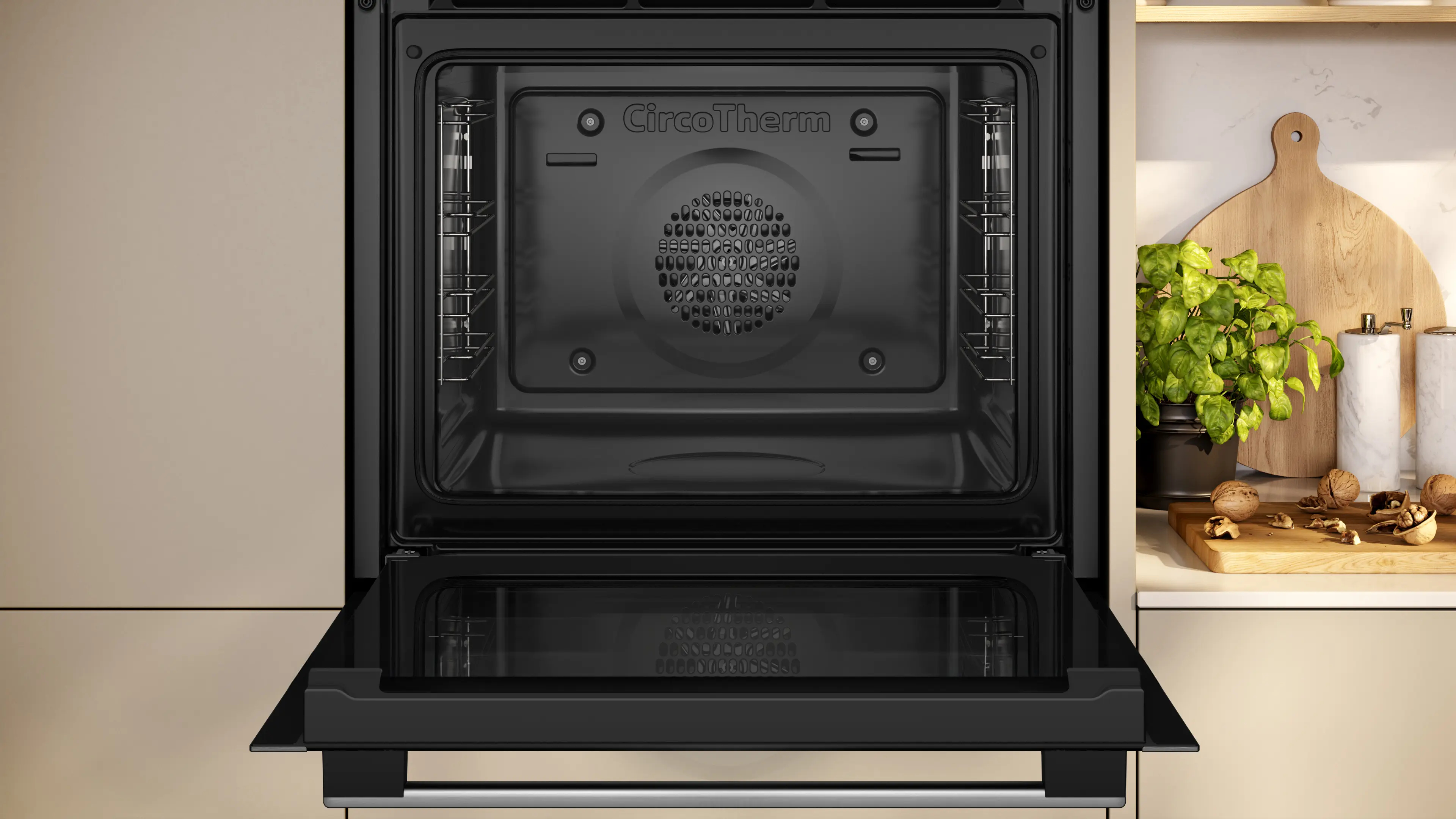 Vuoi cuocere tre teglie di deliziosi biscotti in una volta sola? Adesso puoi farlo, con CircoTherm®. Il flusso d'aria ad alta velocità distribuisce il calore in modo uniforme in tutto il forno. Puoi persino cuocere simultaneamente un magnifico arrosto e la tua torta di frutta preferita. CircoTherm® cuoce ogni piatto con cura, così puoi dedicare più tempo a intrattenere i tuoi ospiti o a pianificare la tua prossima prelibatezza.