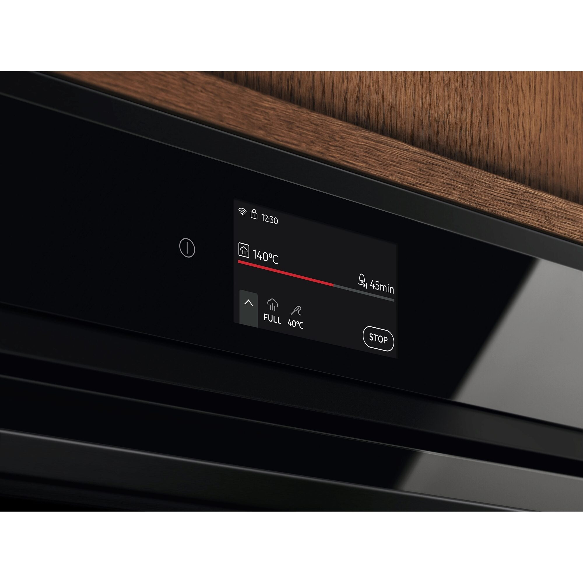 Electrolux Serie 800 EOB9S3XH Forno A vapore MealAssist con SteamPro Connessione Wi-Fi. Dimensione del forno: Media, Tipo di forno: Forno elettrico, Capacità interna forno totale: 70 L. Posizionamento dell'apparecchio: Da incasso, Colore del prodotto: Nero, Tipo di controllo: Touch. Tipo di timer: Digitale. Classe efficienza energetica: A++, Consumo energetico (convenzionale): 1,09 kWh, Consumo energetico (convezione forzata): 0,52 kWh. Programmi per produzione di pane e pasta: Impasto