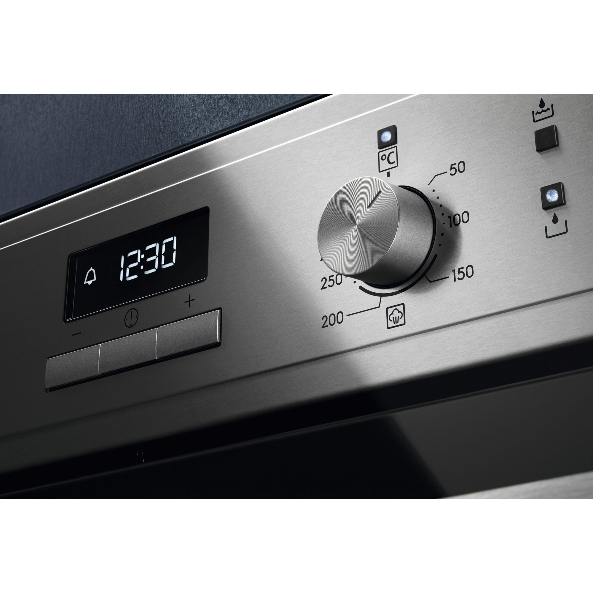 Electrolux LOC3S40X2 Forno A vapore SenseCook con SteamCrisp Serie 600. Dimensione del forno: Media, Tipo di forno: Forno elettrico, Capacità interna forno totale: 72 L. Posizionamento dell'apparecchio: Da incasso, Colore del prodotto: Acciaio inox, Tipo di controllo: Pulsanti, Manopola. Tipo di timer: Digitale, Modalità di impostazione del timer: Timer. Consumo energetico (convenzionale): 0,93 kWh, Consumo energetico (convezione forzata): 0,81 kWh, Scala di efficienza energetica: Da A+++ a D. Tipo di lampada: Alogena