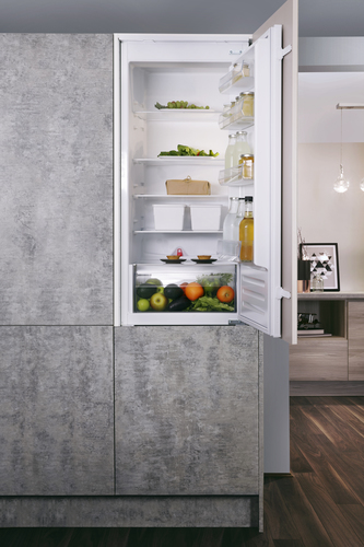 Hotpoint Ariston Frigorifero da incasso BSZ 1802 AAA. Posizionamento dell'apparecchio: Da incasso, Colore del prodotto: Bianco, Cerniera porta: Destra. Capacità netta totale: 292 L, Classe climatica: SN-T, Emissione acustica: 35 dB. Capacità netta frigorifero: 262 L, Tipo di lampada: LED. Posizione del congelatore: Posto in alto, Capacità netta congelatore: 30 L, Capacità di congelamento: 3 kg/24h. Consumo energetico annuo: 220 kWh, Classe di efficienza energetica (vecchia): A++, Carico di collegamento: 130 W