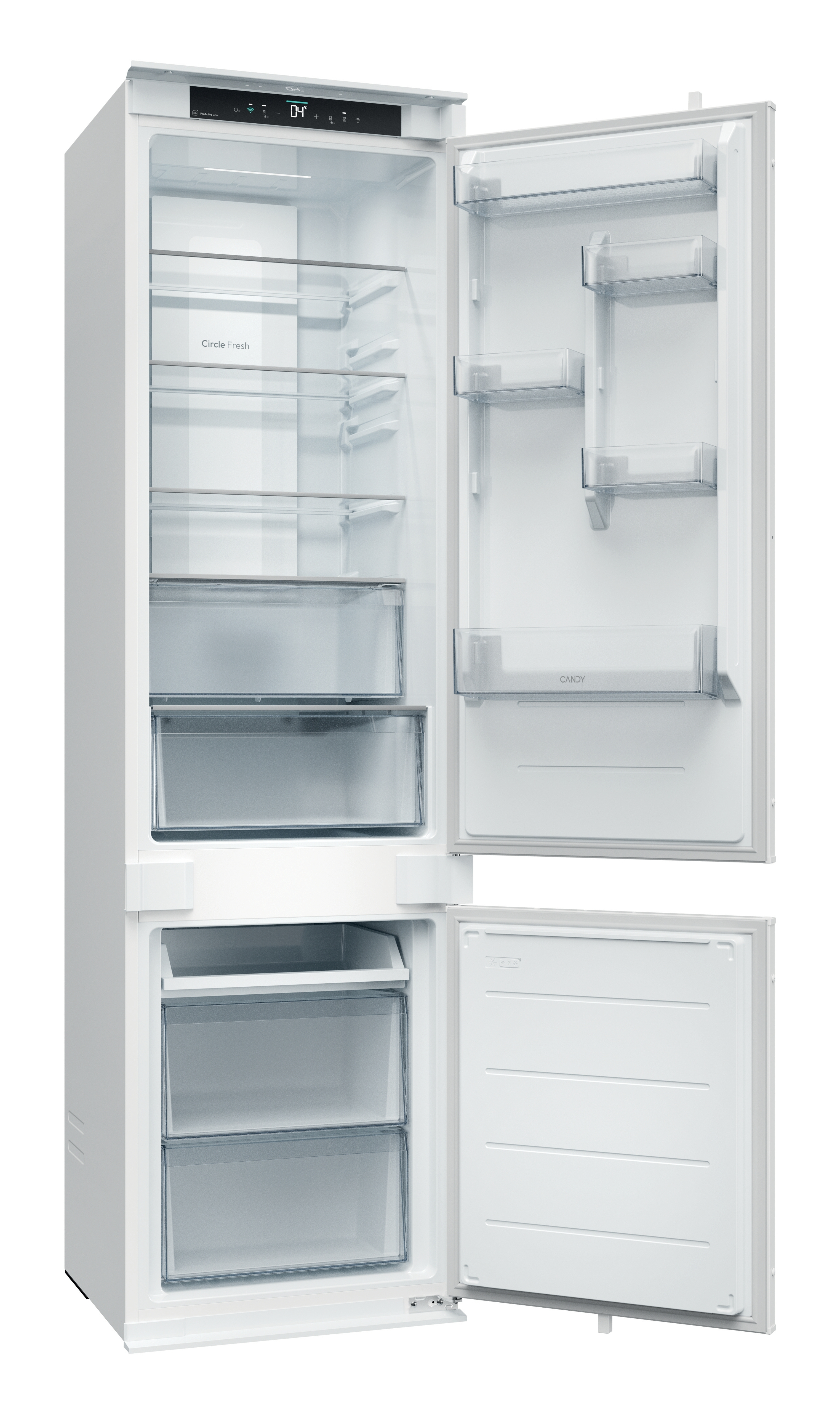 Candy Fresco CNBQT3519EW. Capacità netta totale: 284 L. Cerniera porta: Destra. Classe climatica: SN-T, Emissione acustica: 35 dB. Capacità netta frigorifero: 211 L, No Frost (frigorifero), Sistema Multi-Airflow (frigorifero), Luce interna. Capacità netta congelatore: 73 L, Capacità di congelamento: 6 kg/24h, No Frost (congelatore). Compartimento zona fresca. Classe efficienza energetica: E, Consumo energetico annuo: 226 kWh. Colore del prodotto: Bianco
