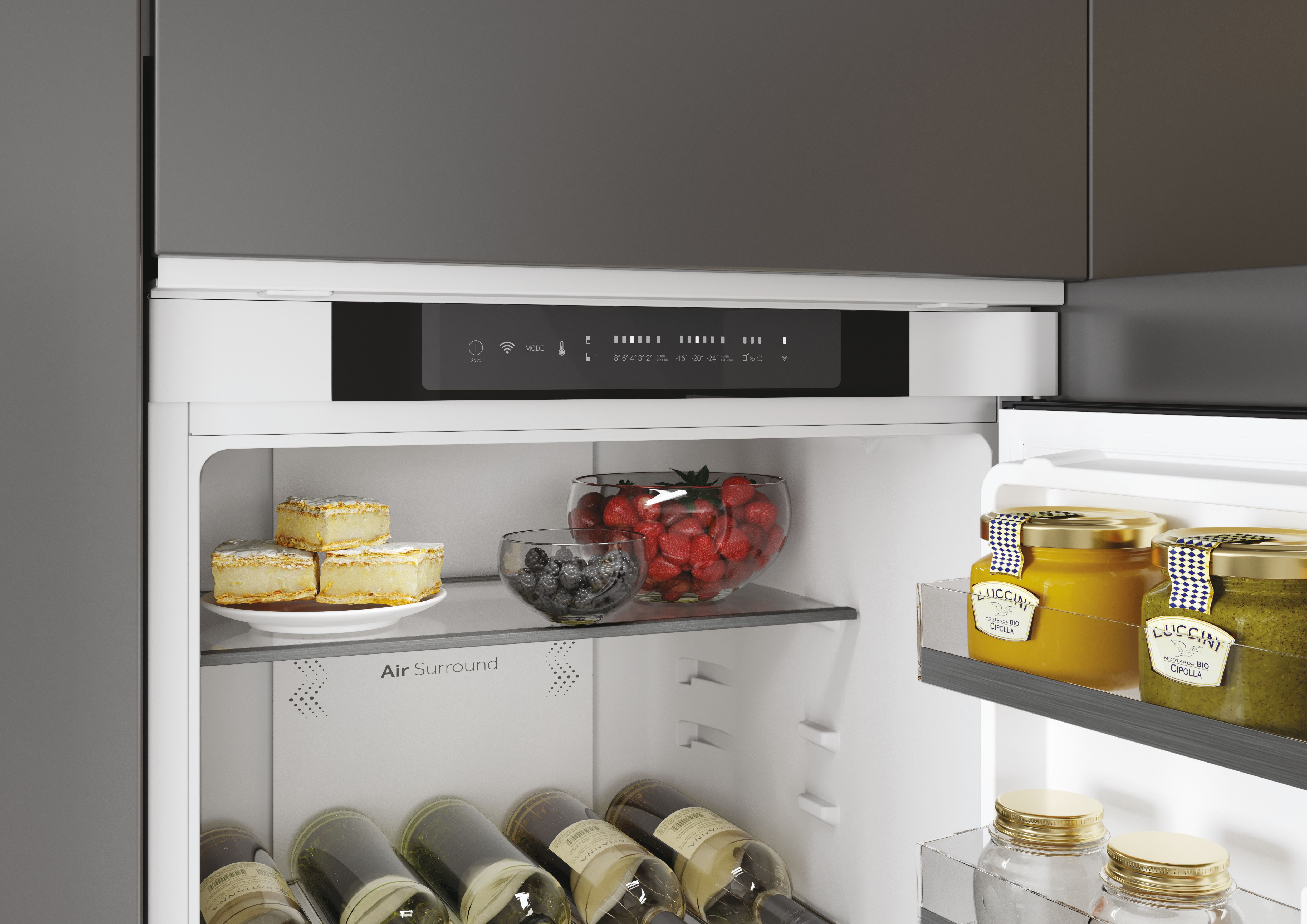 Il frigorifero è dotato di un display nella parte superiore dove è possibile impostare indipendentemente la temperatura del frigorifero (da 2°C a 8°C) e del congelatore (da -16°C a -24°C). Dal display è possibile impostare altre funzioni come Holiday, Eco, Super cool, Super freeze e connettere il proprio frigorifero grazie all'app hOn.