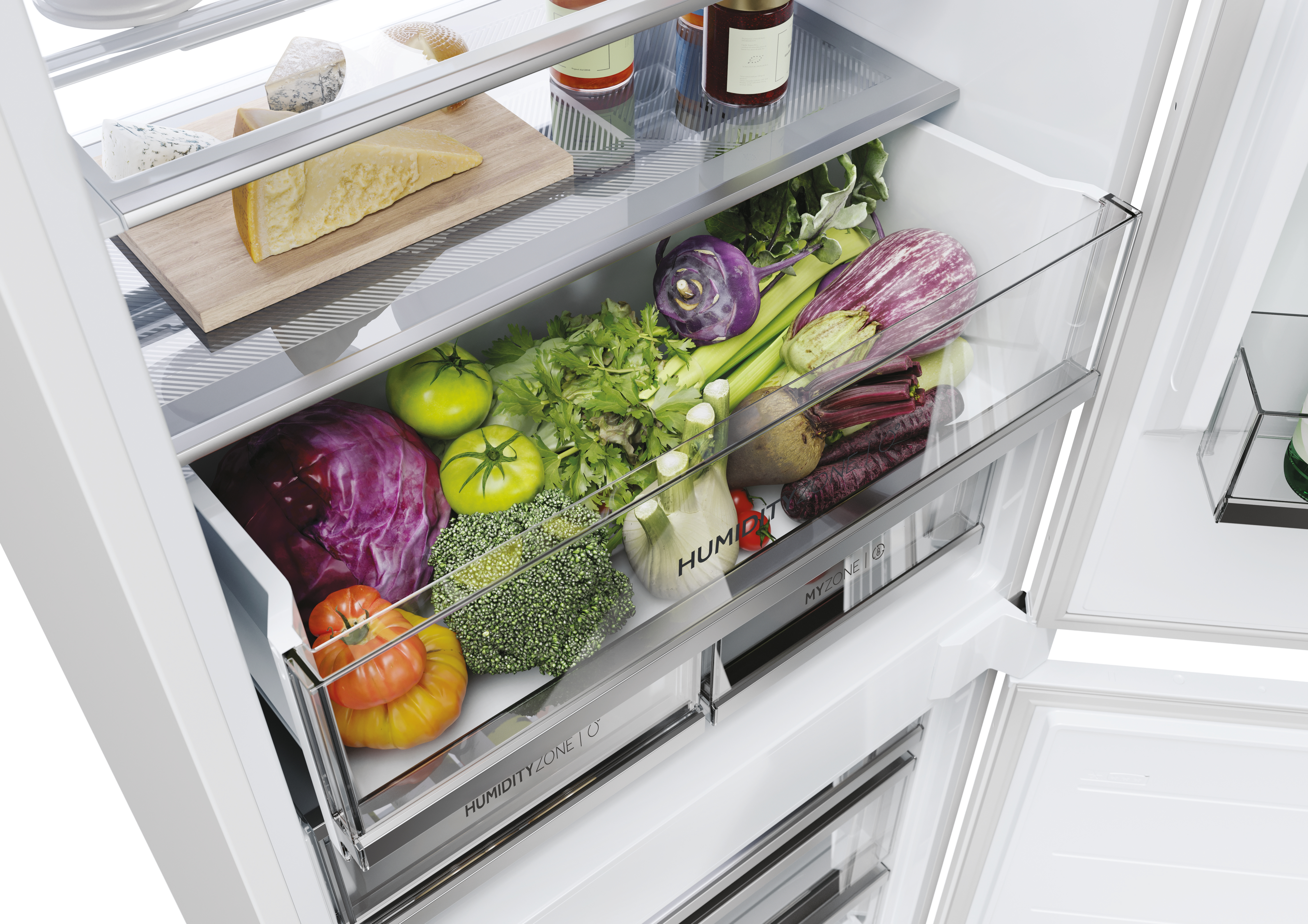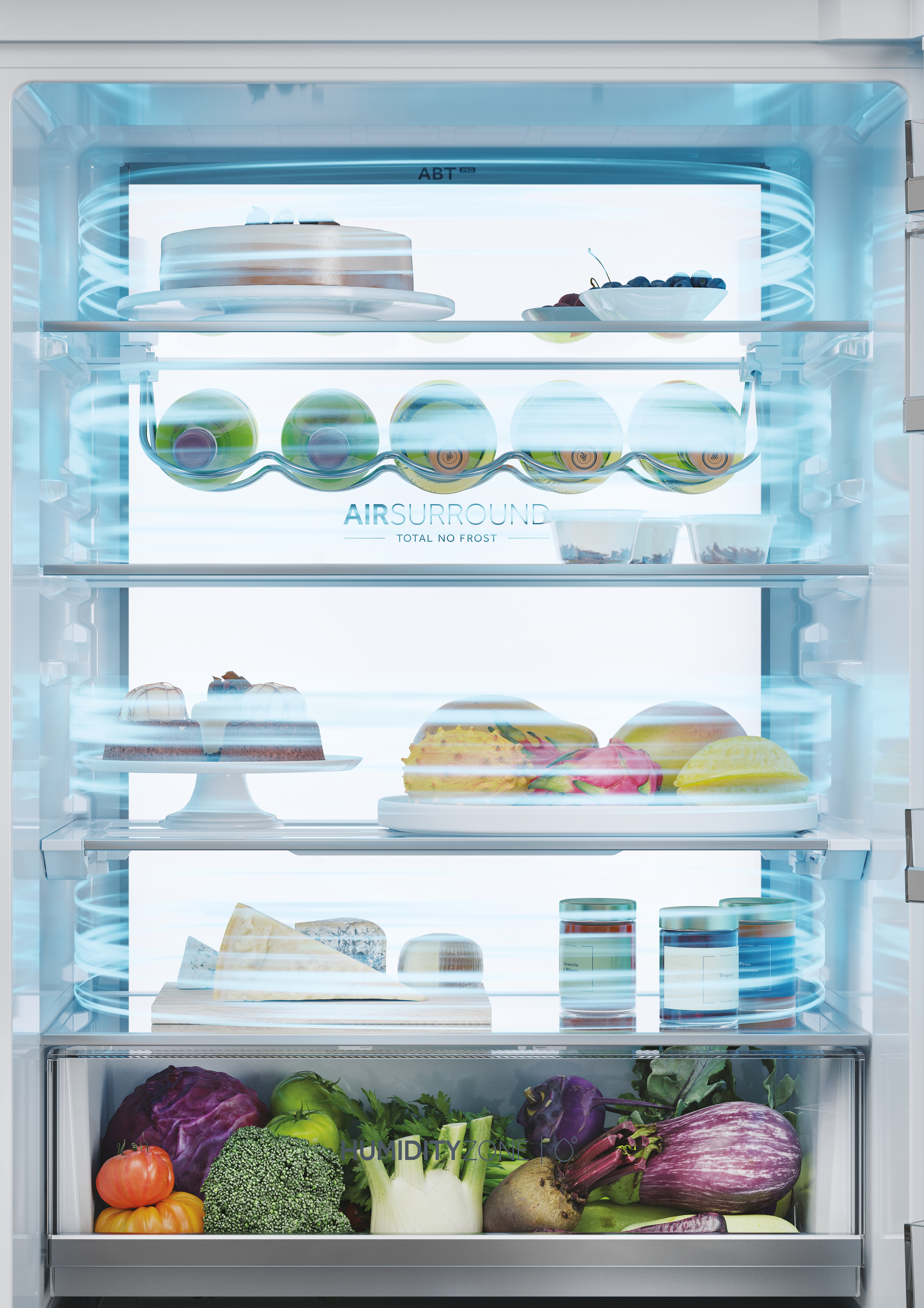 Il frigorifero da incasso ID Serie Titanium garantisce un livello di temperatura e umidità costantemente stabile all'interno degli scomparti del frigorifero e del congelatore. Ogni zona è dotata di un proprio sistema separato per il flusso d'aria, impedendo la miscelazione degli odori e mantenendo le condizioni ottimali per preservare la freschezza e il sapore dei cibi.